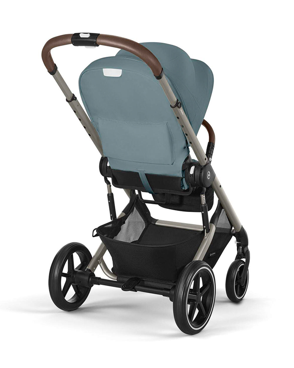 Cybex Balios S Lux Stroller-Advanced Wheel Suspension-Height Adjustable Parent Handle Bar-Reversible & Flat Reclining Seat-One Hand Fold-2 Years Warranty-For 0 to 4Y (Upto 22 Kg)-Taupe Frame & Stormy Blue Seat
