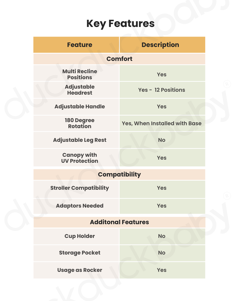 • Removable Newborn Inlay: Adds ergonomic support for newborns and prevents their head from tipping forward during sleep.