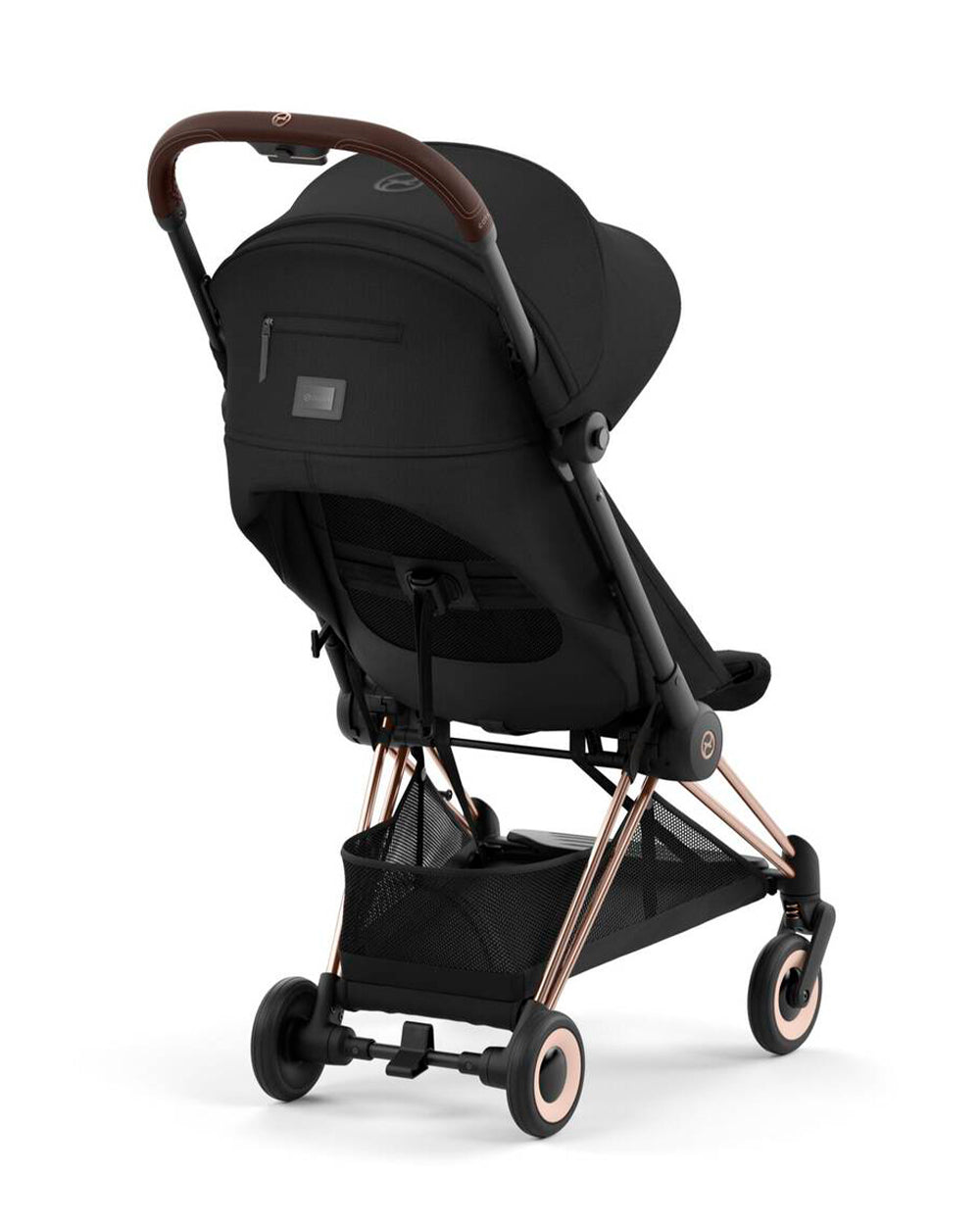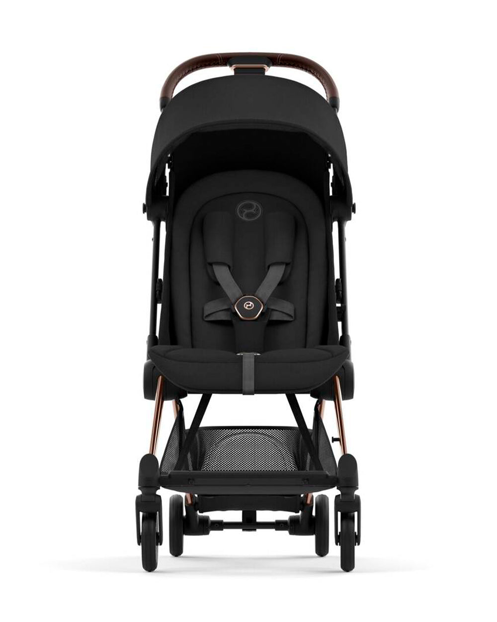 Cybex Coya Cabin Friendly Stroller-Ultra Compact One Hand Fold-Near Flat Reclining Seat-Car Seat Compatible-2 Years Warranty-For 0 to 4Y (Upto 22 Kg)-Rosegold Frame & Sepia Black Seat