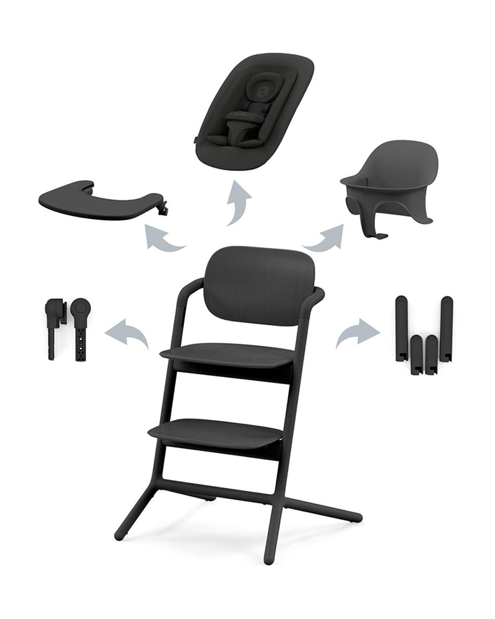 Cybex Lemo 4 in 1 High Chair-With Bouncer Seat, Baby Set & Tray-Individual Height & Depth Adjustment of Seat & Footrest-Anti Tip Rear Wheels for Easy Movement-2 Years Warranty-For 0 to 99Y (Upto 120 Kg)-Stunning Black