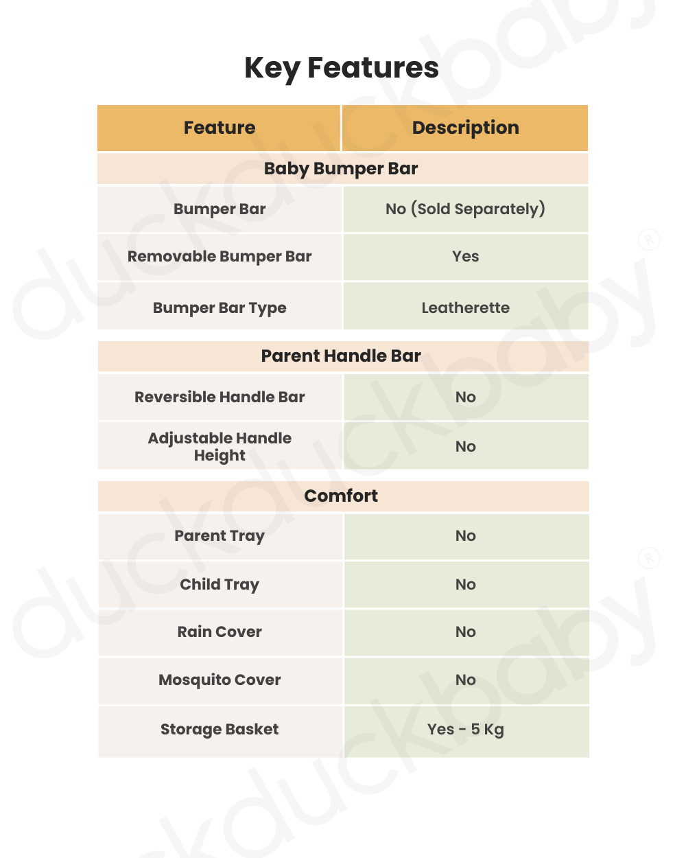• Lightweight Yet Spacious: At just 6.3kg, it balances portability with a spacious seat and trolley-style storage capabilities.