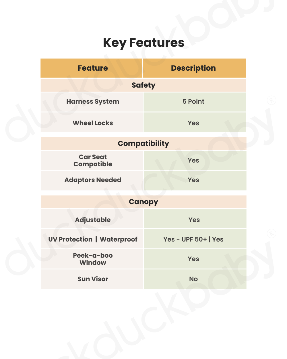 • Machine-Washable Fabric Covers: Easy to remove and ideal for quick wash cycles, keeping the stroller fresh and clean.