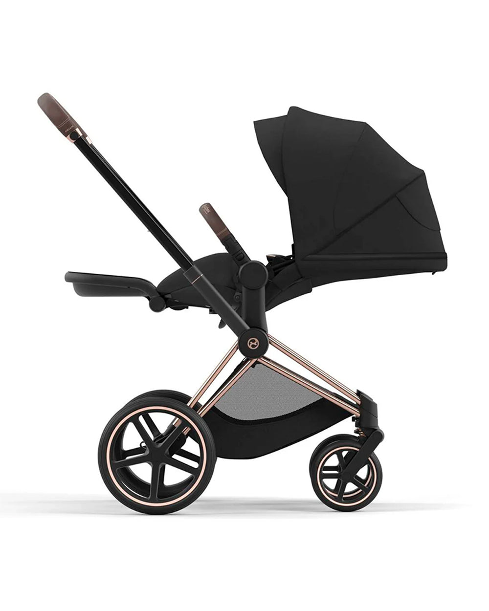 Cybex Priam Stroller-Height Adjustable Parent Handle Bar-Reversible & Flat Reclining Seat-One Hand Fold-Travel System Compatible-2 Years Warranty-For 0 to 4Y (Upto 22 Kg)-Rosegold Frame & Sepia Black Seat