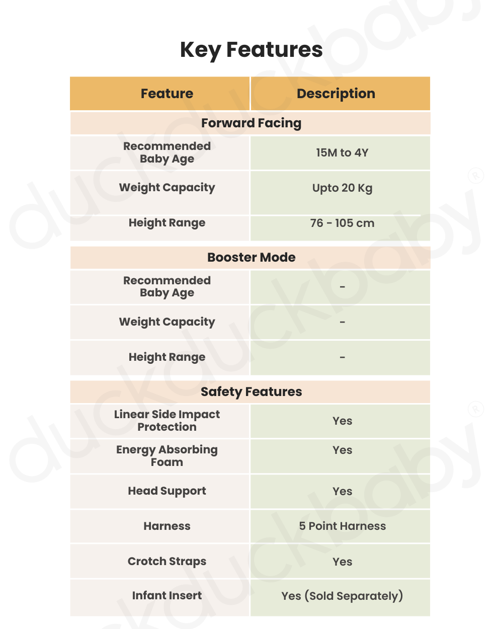 • Rear-Facing Comfort till Age 4: Offers up to 50% more frontal crash protection compared to forward facing installations.