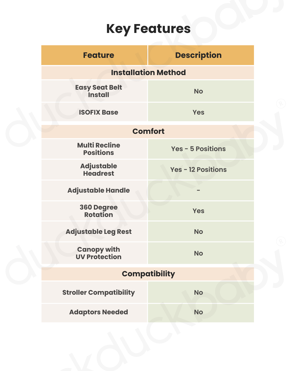 • Rear-Facing Comfort till Age 4: Offers up to 50% more frontal crash protection compared to forward facing installations.