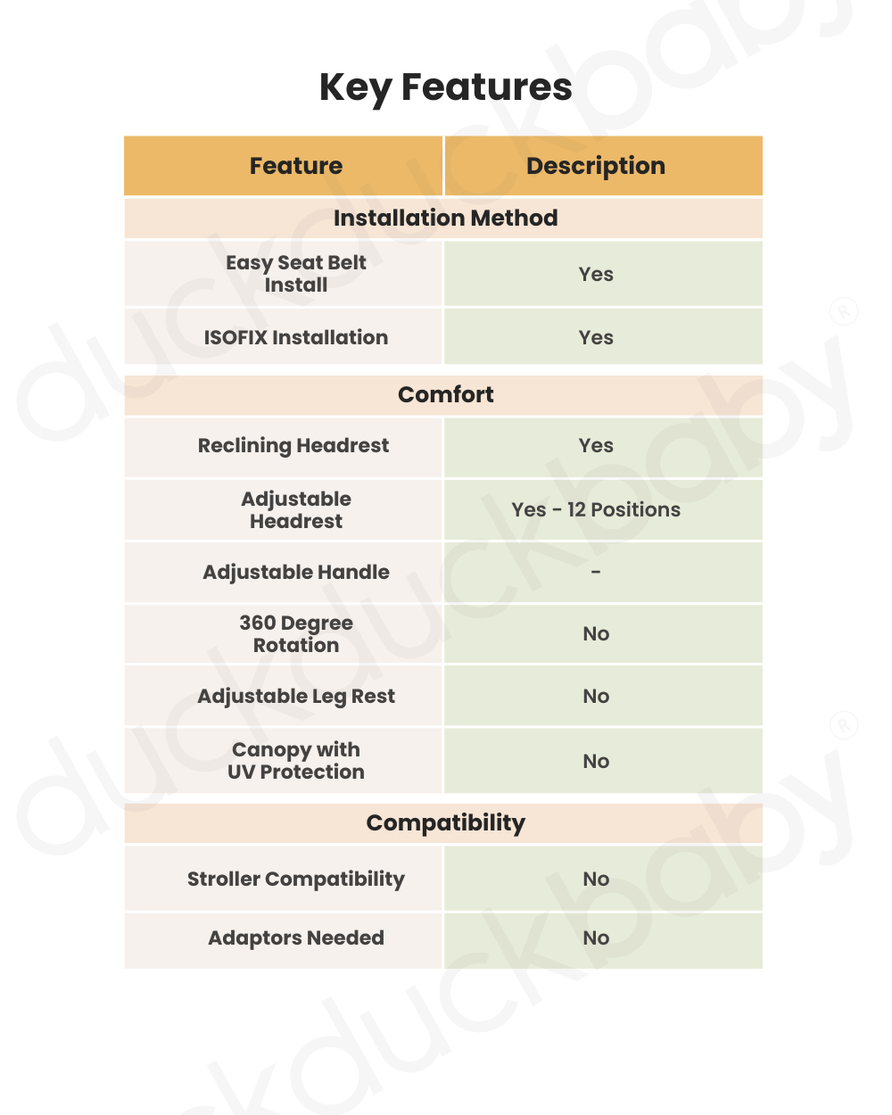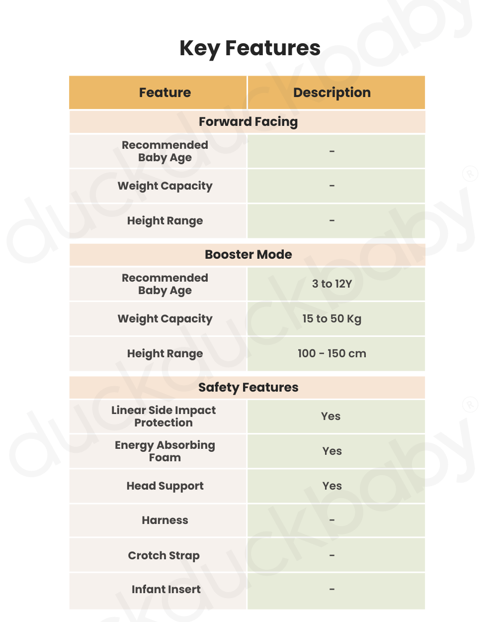 • Height-Adjustable Headrest & Flexible Side Wings: Grows with your child while maintaining side protection and comfort.