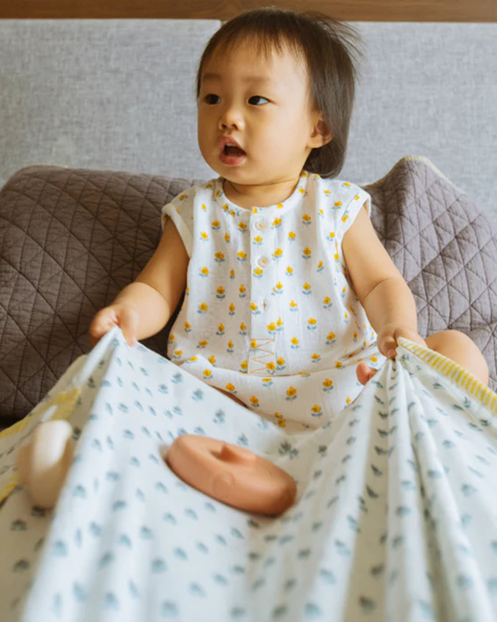 Made of super‑soft Mulmul Muslin, this Dohar comes in two styles: regular and reversible. Each Dohar is constructed with three lush layers, offering a lightweight yet comforting blanket perfect for both day and night. Hand‑stitched by artisans, it features soothing prints that bring a calming charm to your little one’s room.