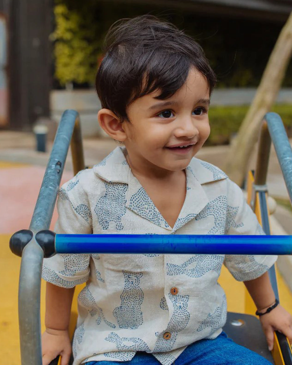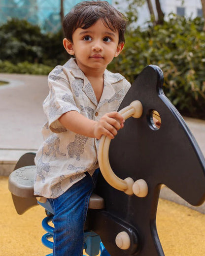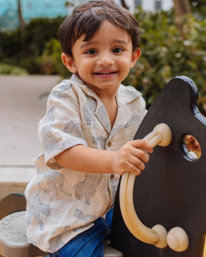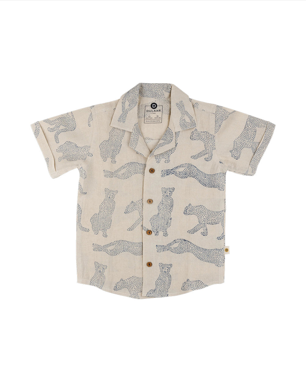 Dulaar Beige Shirt-Cheerful Cheetas-Organic Linen Hand Block Print- For Infants