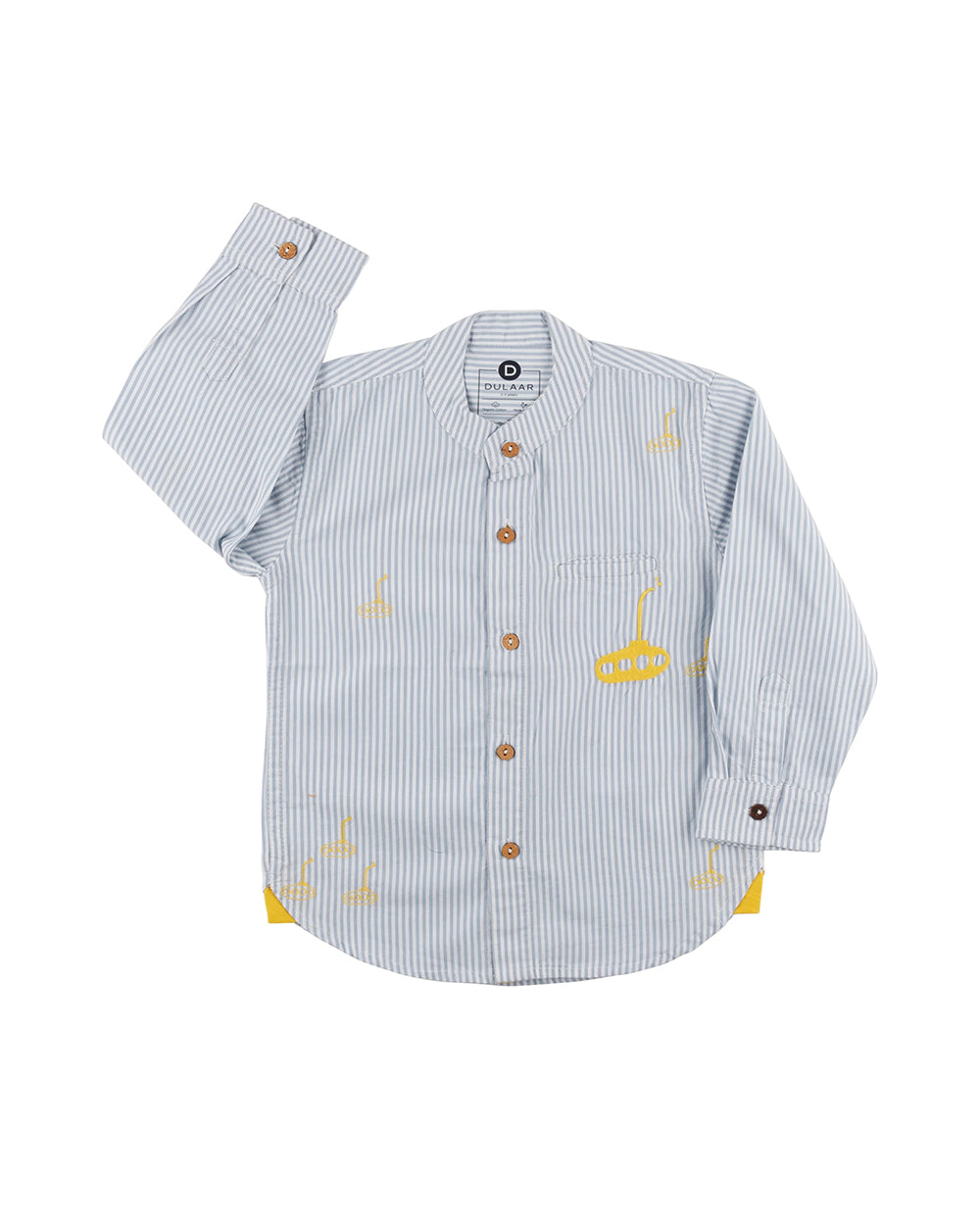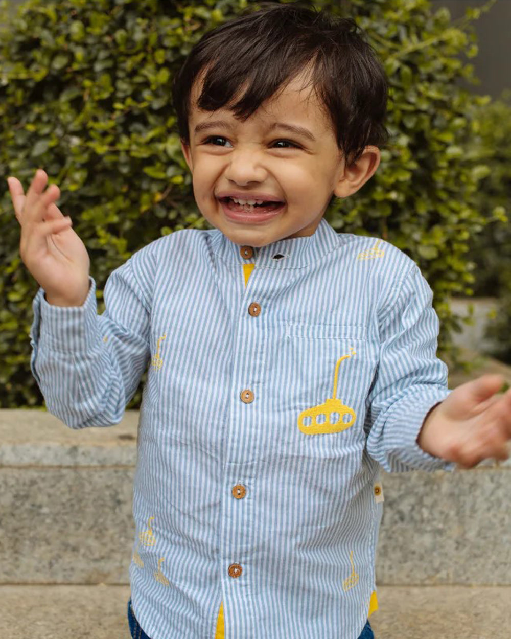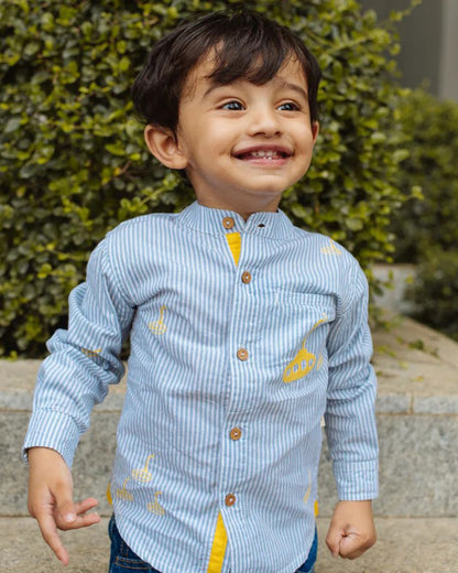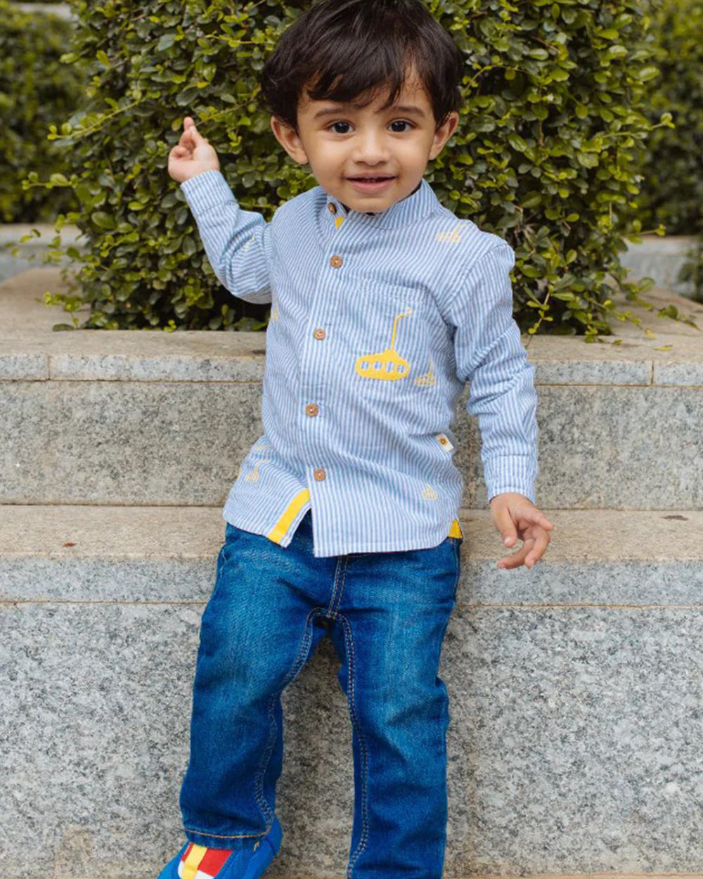 Dulaar Blue Shirt-Yellow Submarine Striped-Organic Cotton- For Infants