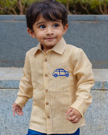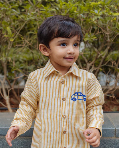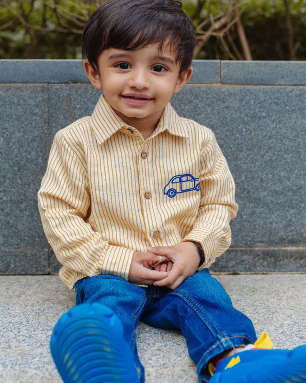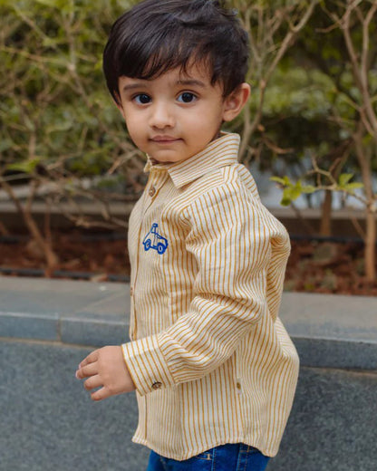 Dulaar Cream Shirt-Vroom-Organic Linen- For Infants