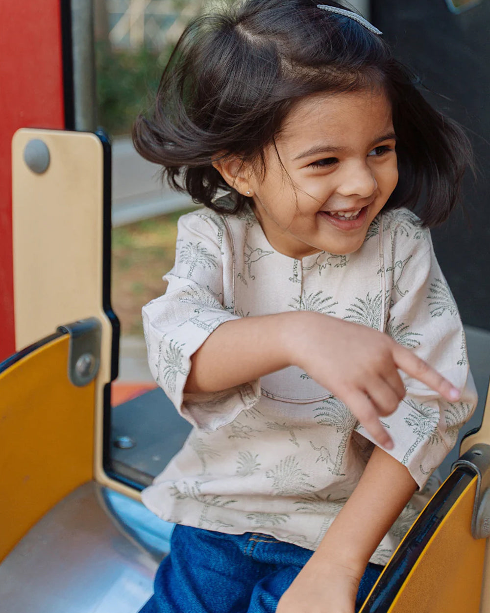 Dulaar Langoor Party Top-Printed-Cotton Linen-For Infants