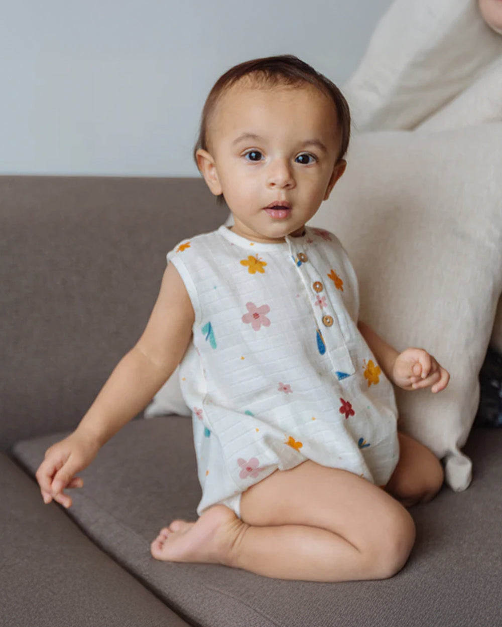 Dulaar White Romper-A World in Bloom-Organic Muslin-For Infants