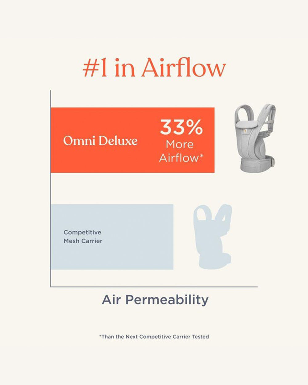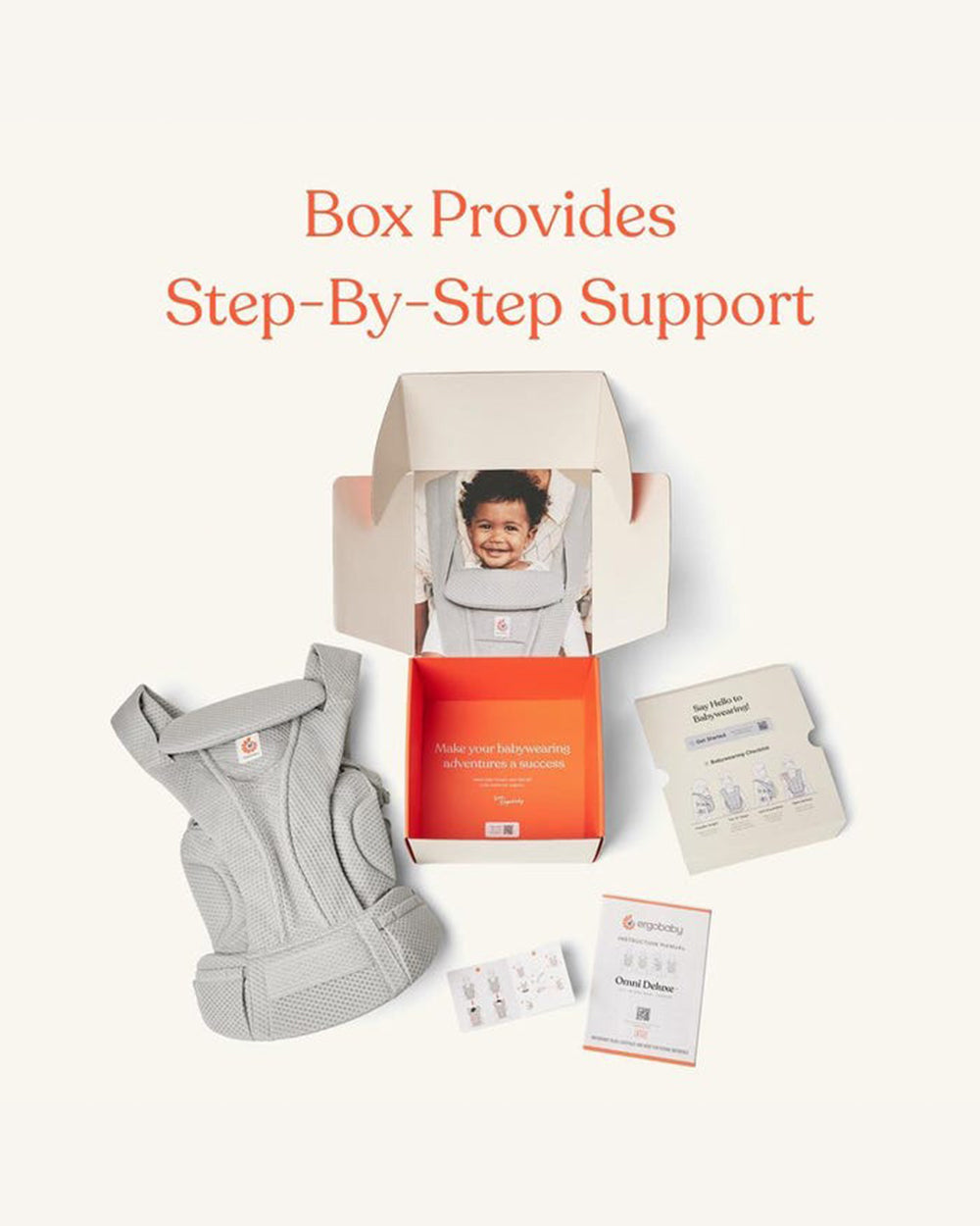 The Omni Deluxe Carrier NEW is the latest and most advanced carrier from Ergobaby, designed to support families in all their daily needs. It features six storage areas—the most of any baby carrier on the market—making it highly practical for carrying essentials like phone, wallet, and keys. The carrier is thoughtfully designed with strap indicator markings to make switching between parents easy.