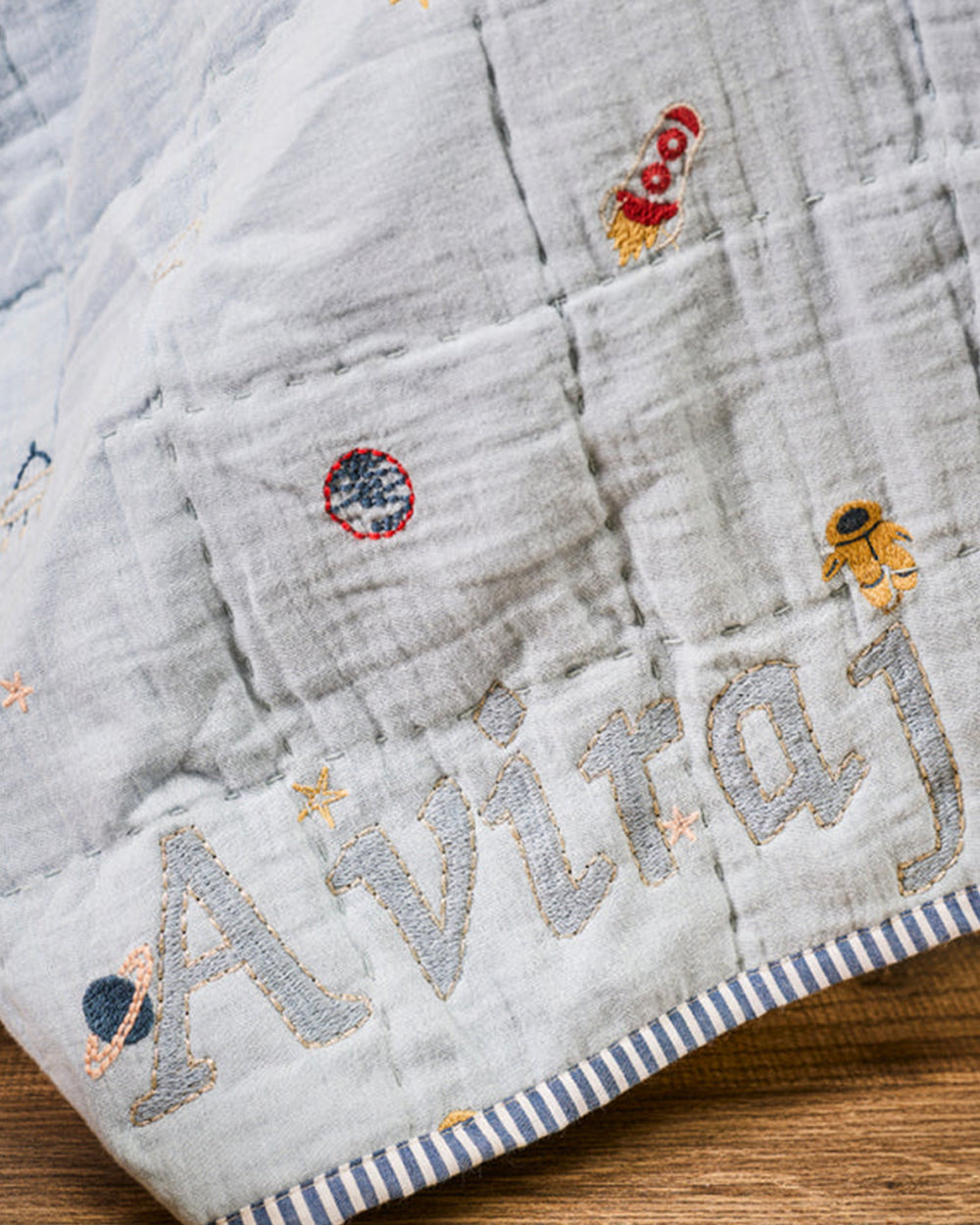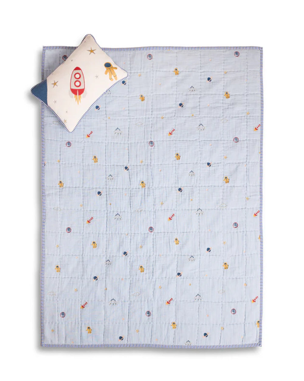 FA Home Quilted Baby Blanket & Pillow Set-Cosmic Explorer-100% Cotton-For Infants