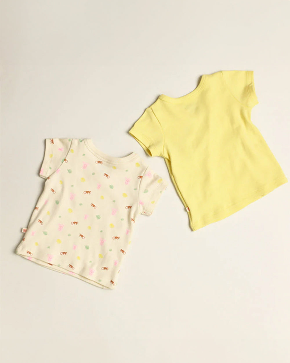 Greendigo Yellow & Pink T-shirts-100% GOTS Certified Organic Cotton-Pack of 2-For Infants