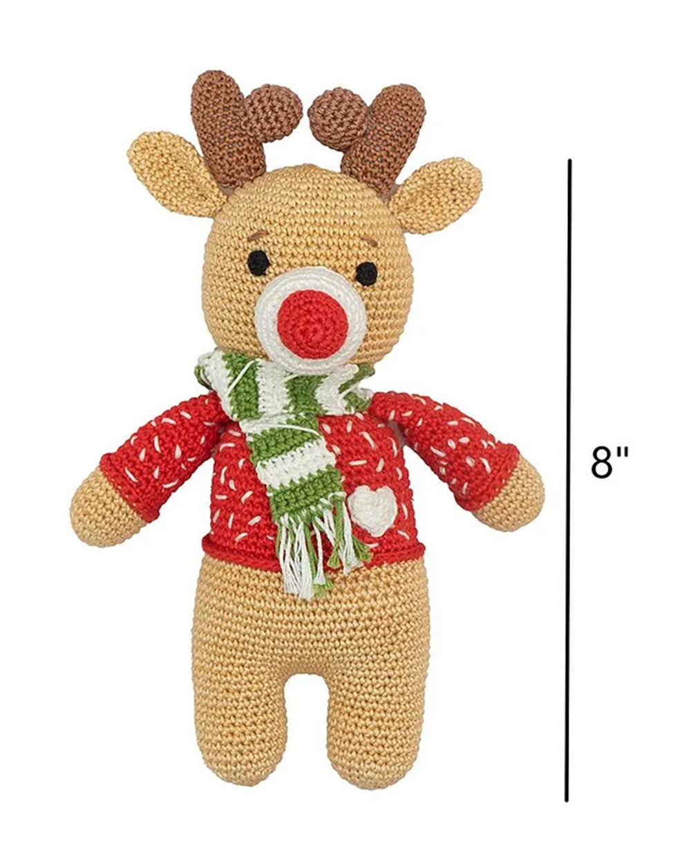 Happy Threads Handcrafted Amigurumi Christmas Soft Toy-Dapper Reindeer-Easily Washable-Handcrafted-Plush Cuddly Toy For Newborn