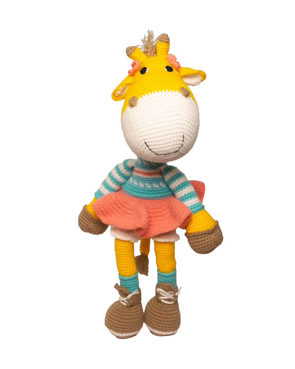 Happy Threads Gerald Giraffe Handcrafted Crochet Soft Toy-Superior-Quality Cotton Thread, Easily Washable, Plush Cuddly Toy For Newborn