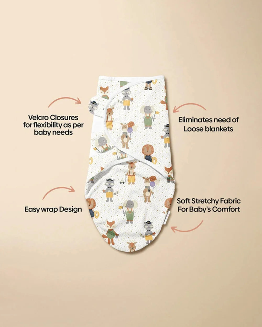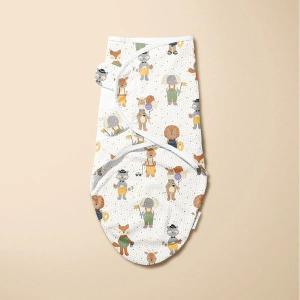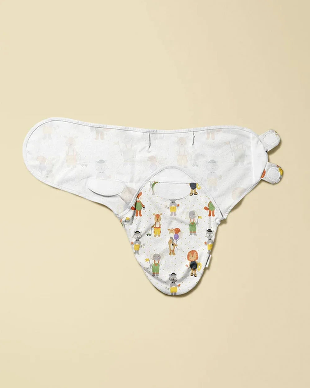 Haus & Kinder Dreamsack Easy Wrap Swaddle-Jungle Party-White-100% Cotton-For Infants