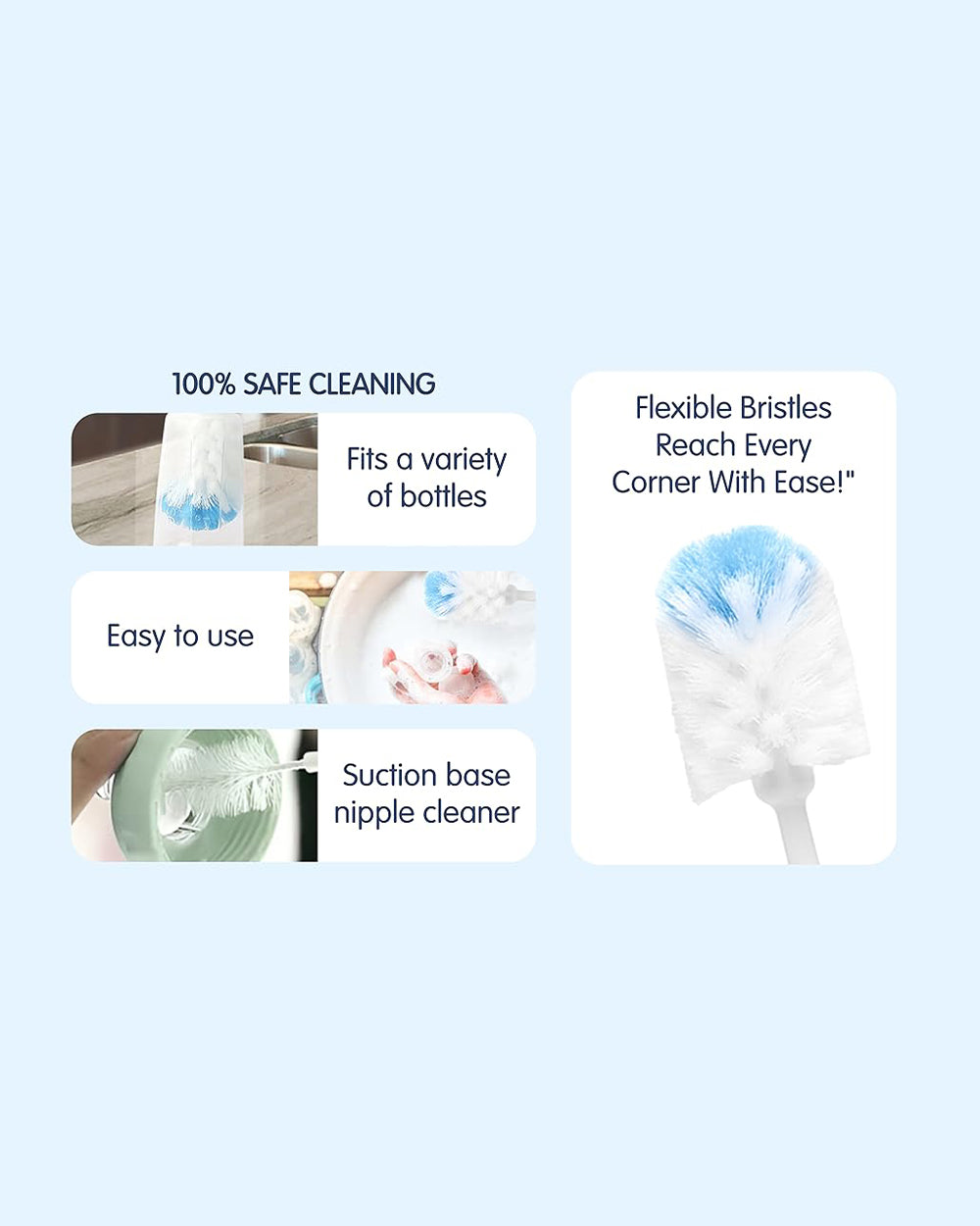 • 2‑in‑1 Brush Design: Combines a bottle brush and a nipple-cleaning brush in one compact tool for versatile use.
