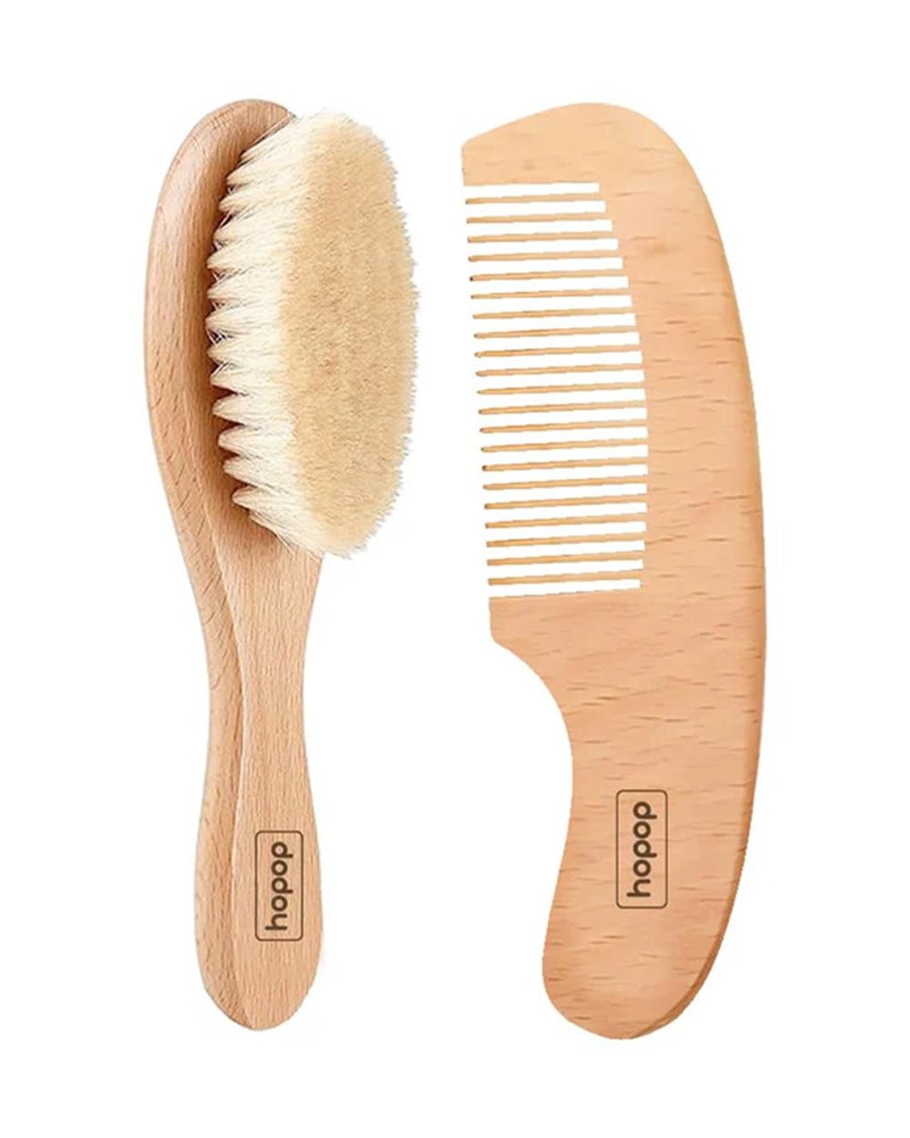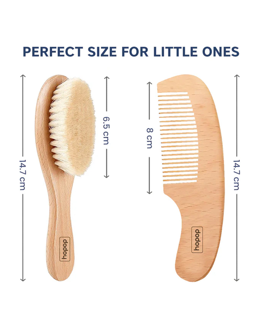 Hopop BPA-Free Baby Wooden Brush & Comb Set-With Natural Soft Bristles & Round Edges