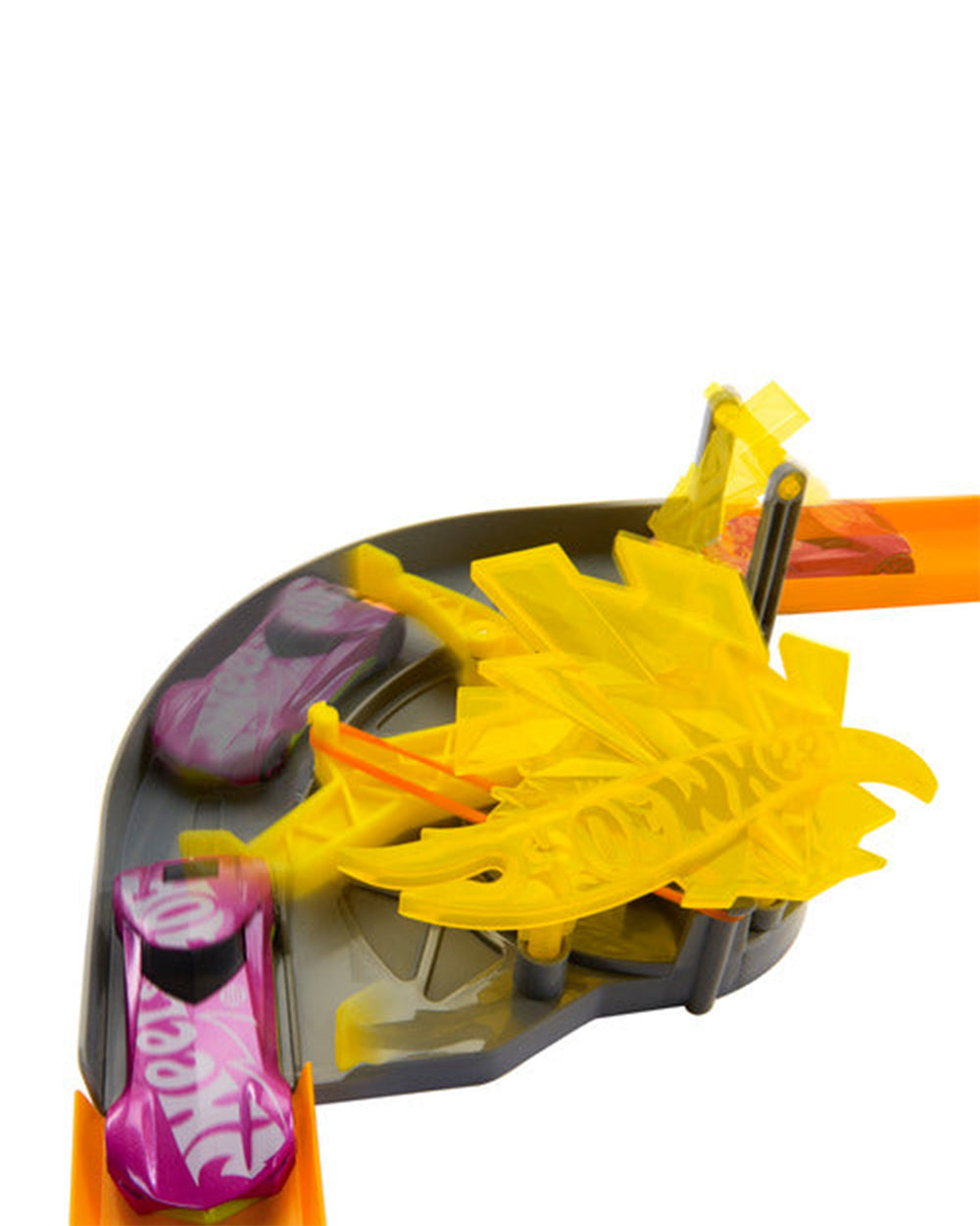 • ​The set includes 12 track-building essentials such as straight track and curved track as well as lightning-themed kickers and flippers to add extra speed along the way.