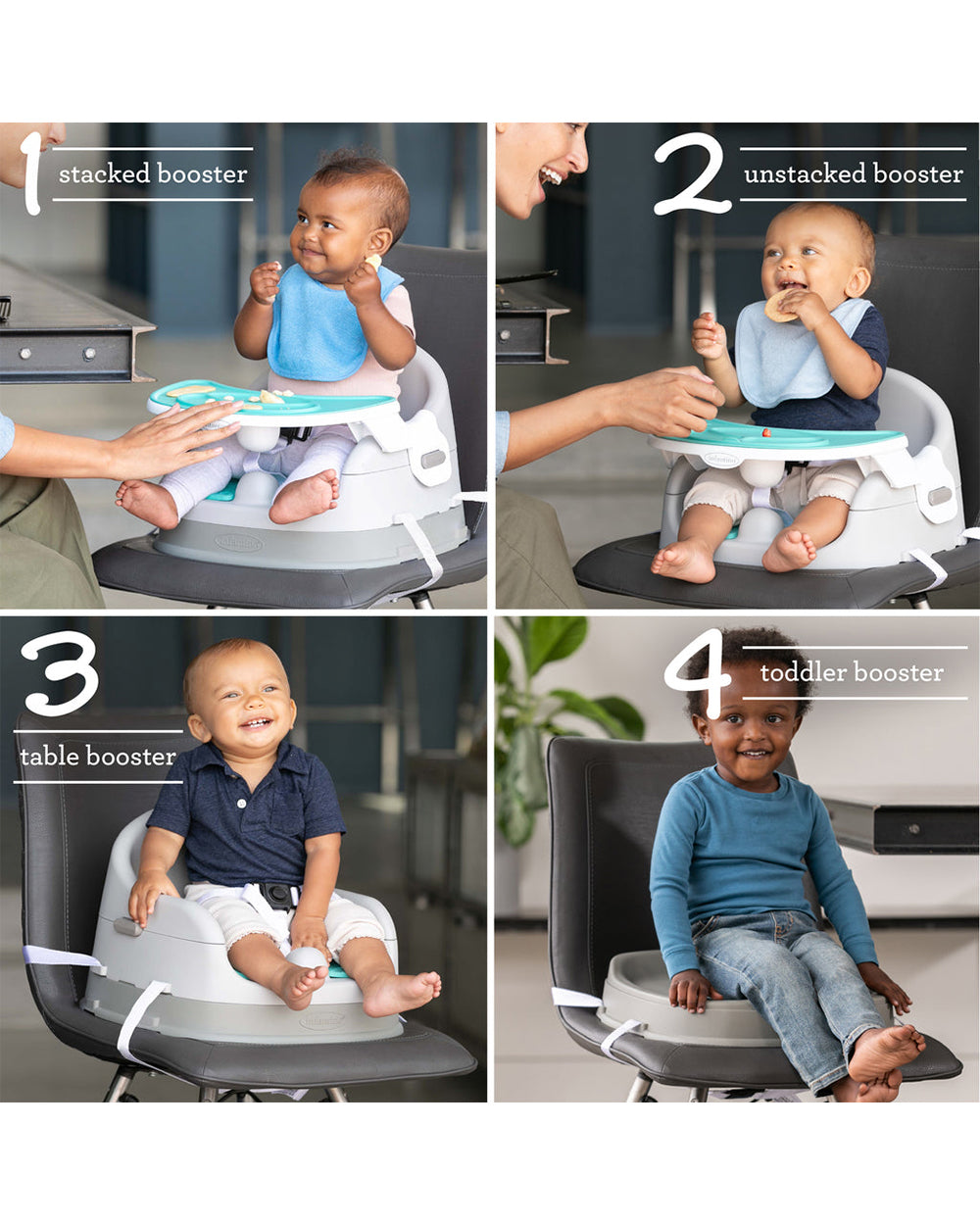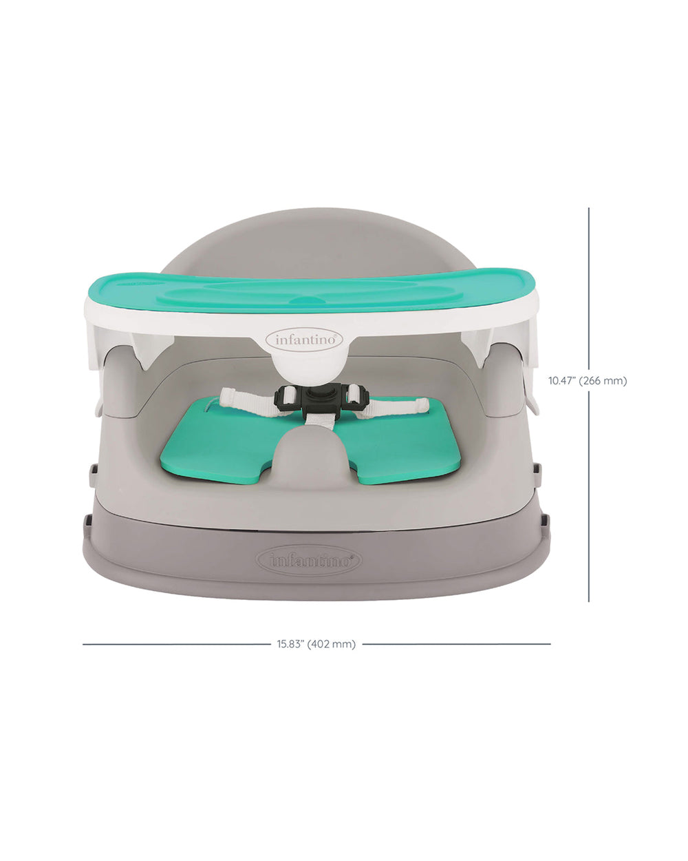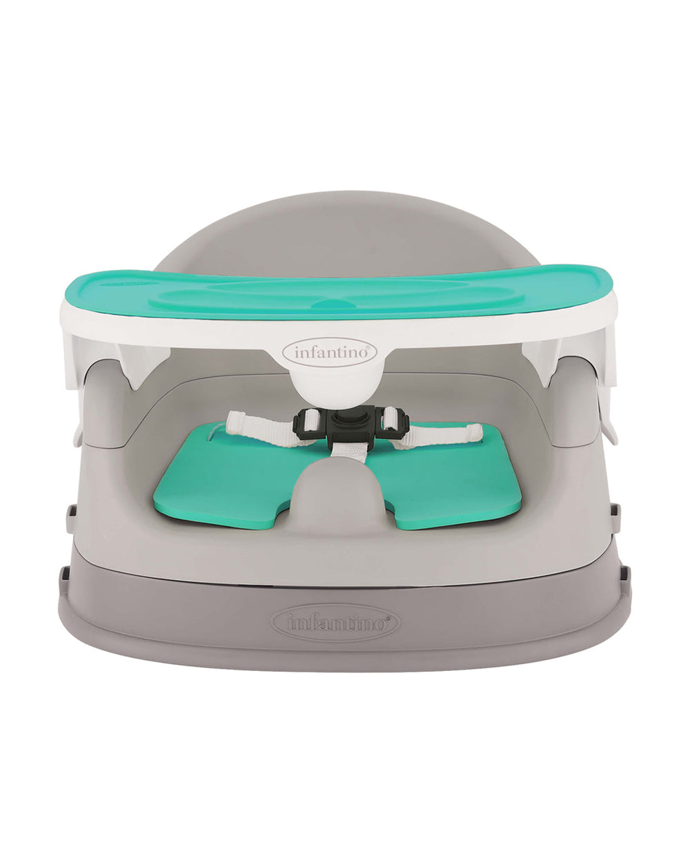 Infantino Grow-With-Me 4-in-1 Booster Seat-Converts Into Infant & Toddler Booster Seat-Two Can Dine-With Dishwasher Safe & Removable Meal Tray-3 Point Harness-For 6 to 36M-Teal & Grey