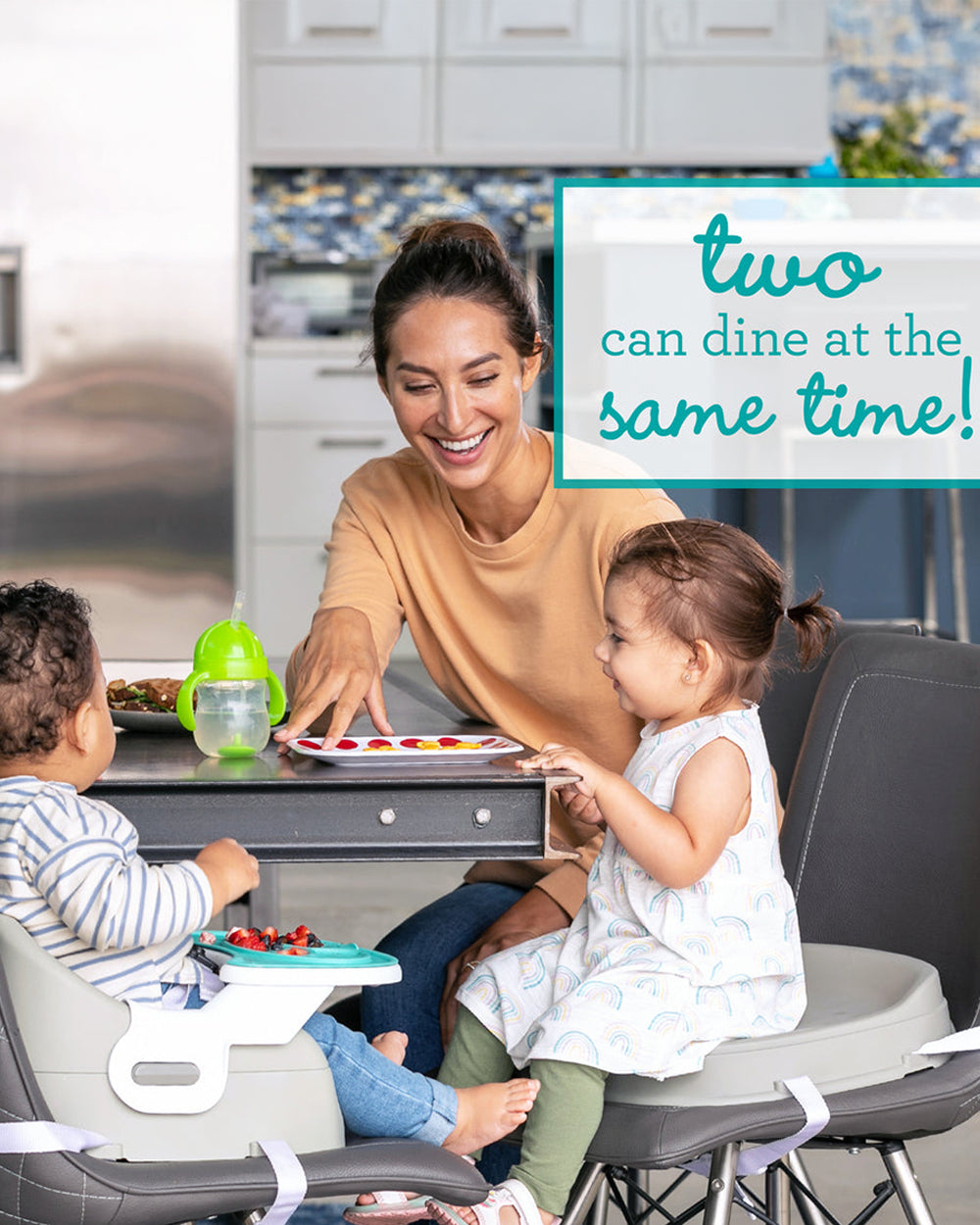 Introducing the Grow-With-Me 4-in-1 Two-Can-Dine Deluxe Feeding Booster Seat: the ultimate mealtime solution that adapts to your growing family. With its smart, stackable design, this innovative booster seat allows two children—an infant and a toddler—to dine at once, making it the perfect choice for families on the go or at the table. Compact, portable, and designed with parent-friendly features, it’s built to grow with your child and simplify every stage of feeding.