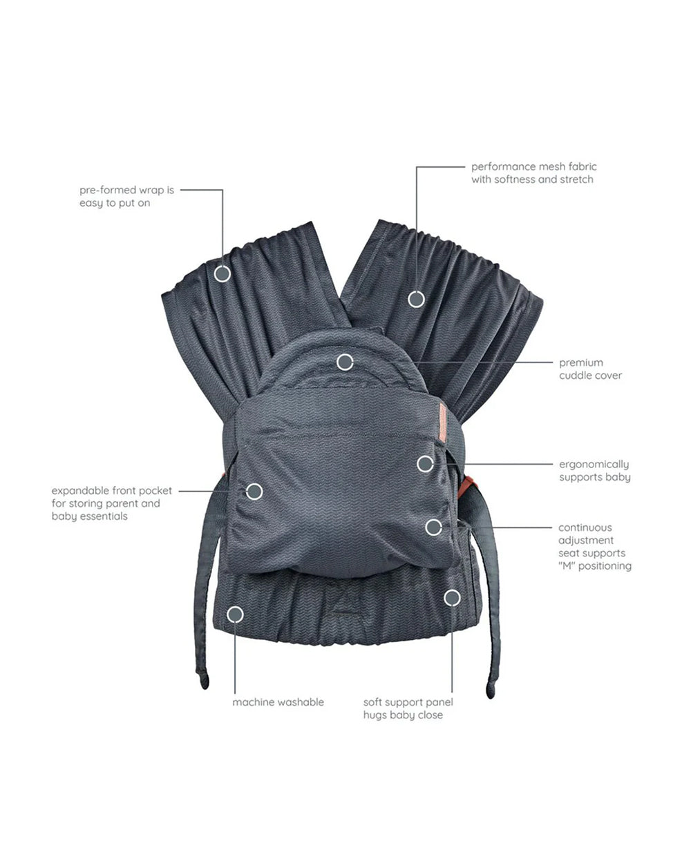 Introducing the Hug & Cuddle Adjustable Hybrid Wrap, the perfect solution for parents looking for a hassle-free, wrap-inspired carrier. This easy-to-use carrier allows you to experience the close bonding benefits of a wrap without the need for wrapping, folding, or tying. It features a supportive stretch panel that naturally hugs your baby, keeping them close and comfortable while you move more naturally.