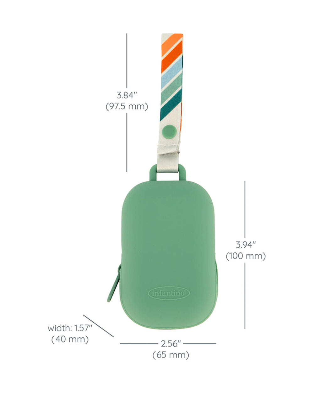 Infantino Pacifier Holder Pod-With Secure Zip Closure-Holds Upto 2 Pacifiers-Easily Attaches to Strollers or Diaper Bags-Silicone Material-Sea Green