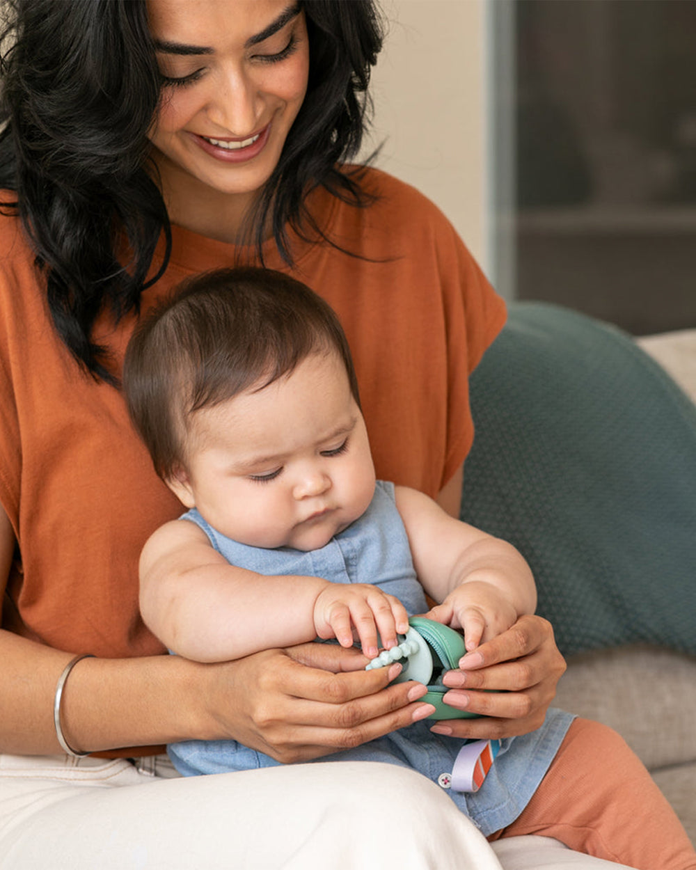 Keep your baby’s pacifiers clean, organized, and always within reach with the Infantino PaciPod – the ultimate on-the-go solution for modern parents. Designed with convenience and hygiene in mind, this sleek silicone case stores up to two pacifiers and features an easy-open zipper for quick access. Whether you're out for a walk or running errands, the PaciPod easily attaches to your stroller or diaper bag, so you’re always prepared. Made from high-quality, durable silicone, it is a breeze to clean. Say goodbye to digging through your diaper bag and hello to stress-free pacifier storage.