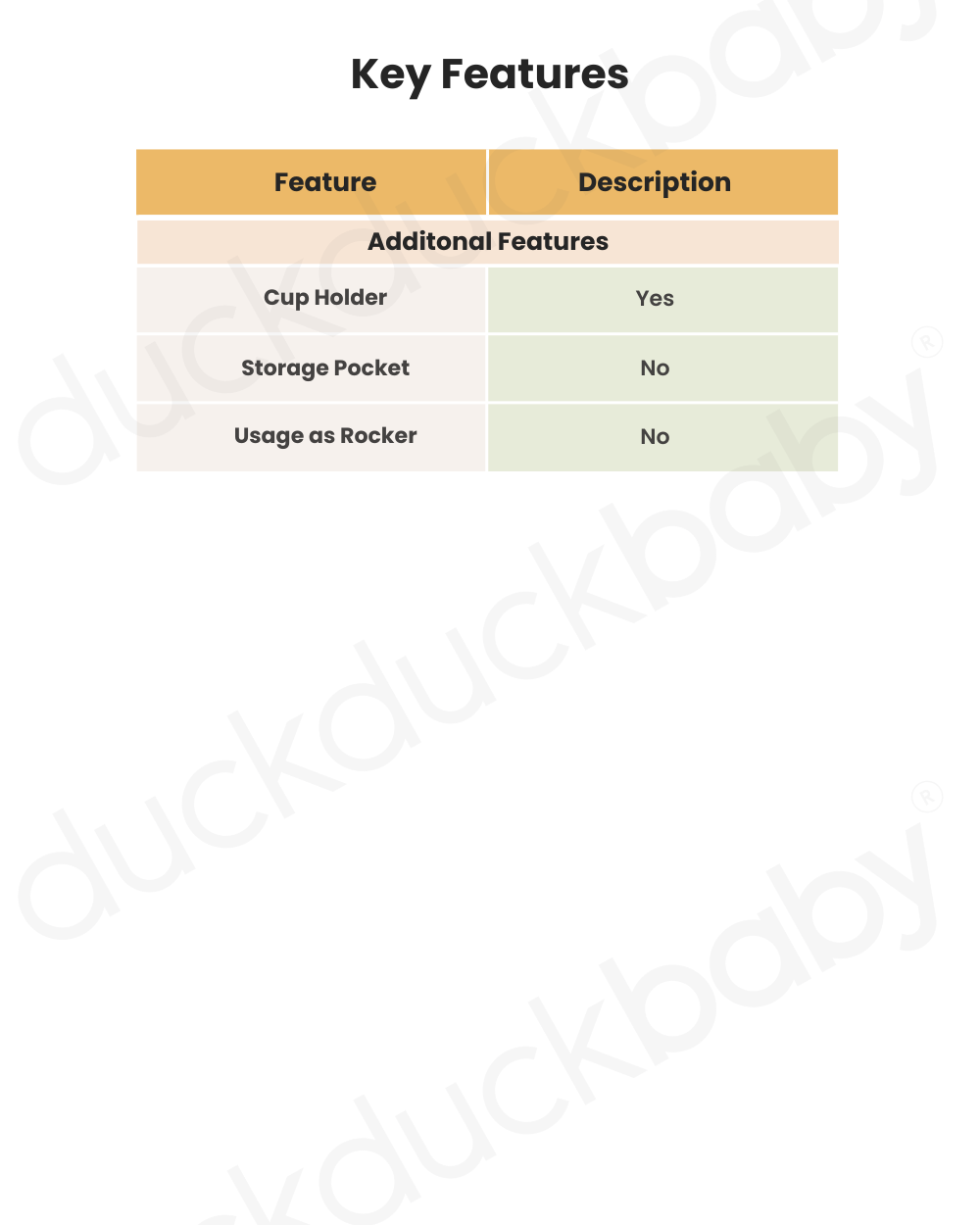 • Integrated Cupholder: Conveniently holds snacks and drinks within reach, helping to prevent hangry meltdowns while on the go.