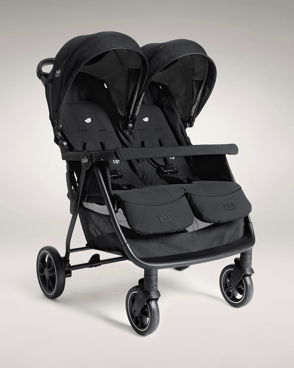 Joie Estrella Twin Stroller-Individually Adjustable Near Flat Reclining Seat-One Hand Fold-2 Years Warranty-Eclipse