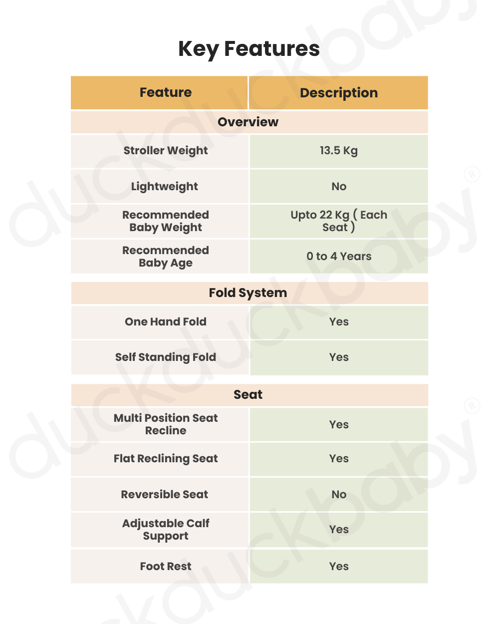 • Dual Mode Functionality: Each seat is suitable from birth to 22 kg (approx. 4 years), allowing siblings of different ages to ride comfortably.