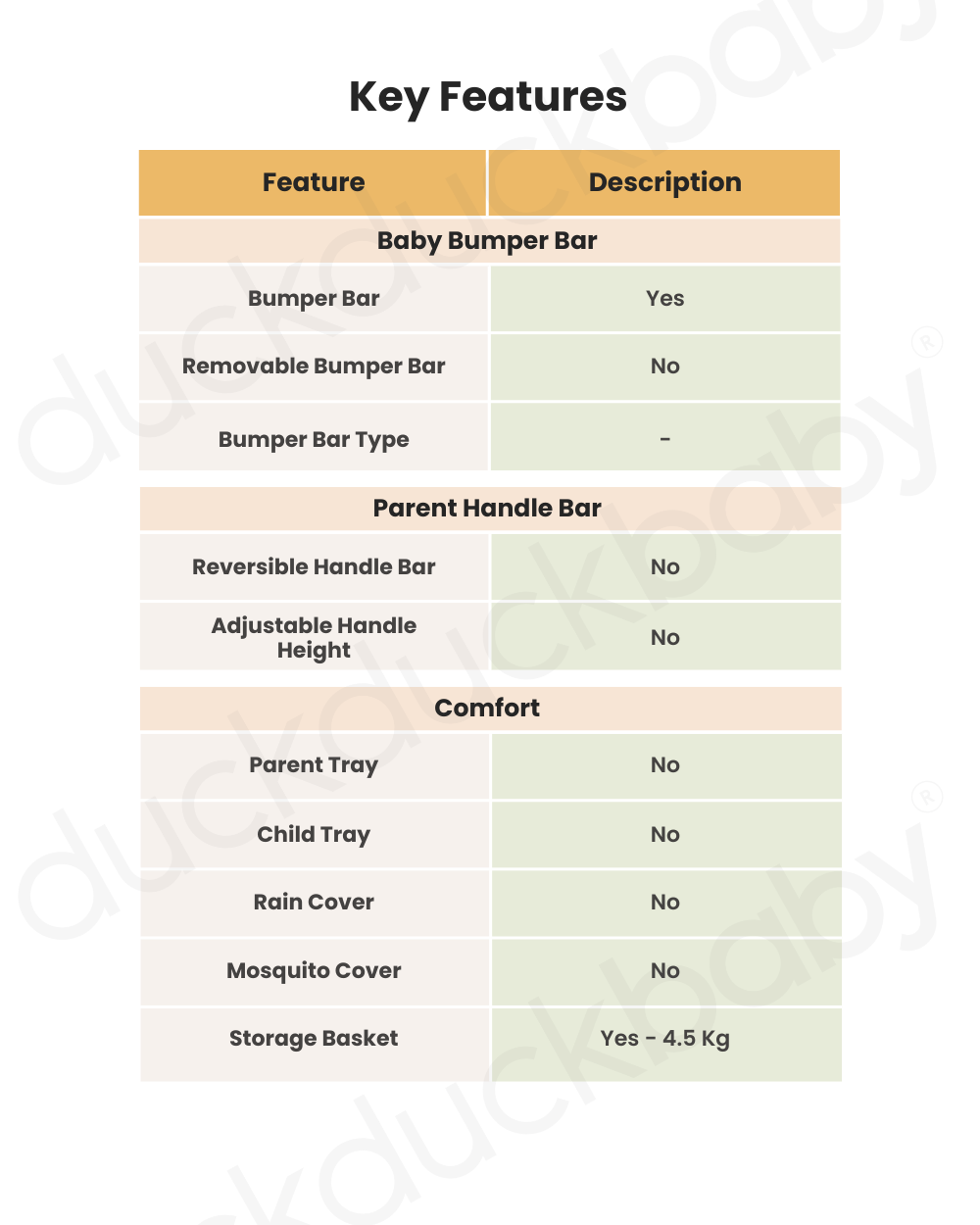 • Large Storage Basket: Double-wide basket provides plenty of room for all your baby essentials, toys, and shopping.