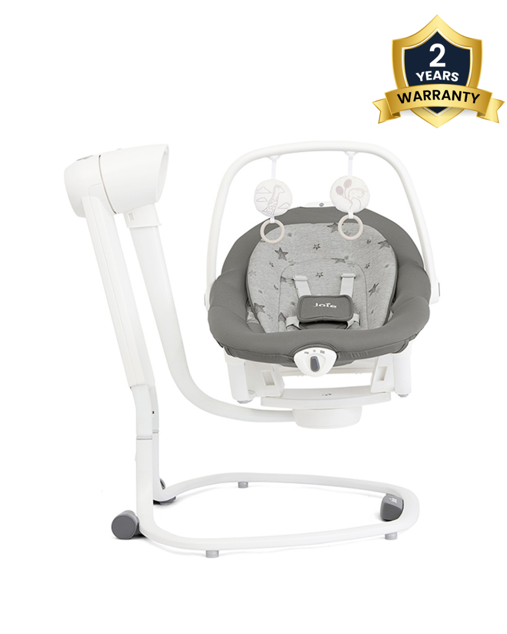 • Engaging Toy Bar: Comes with a toy bar featuring two plush toys to entertain and engage your little one during their soothing sessions.