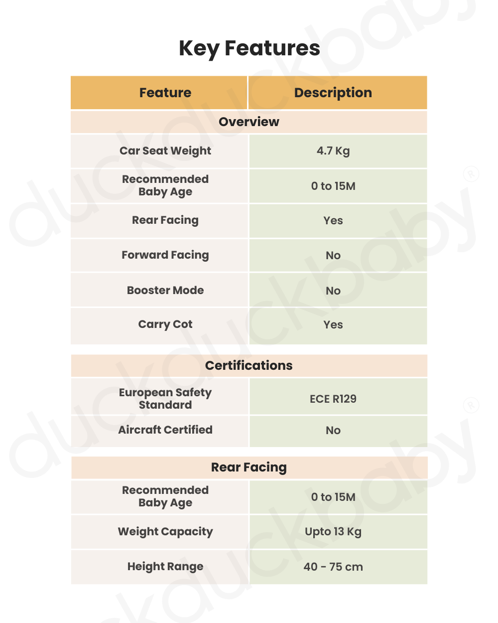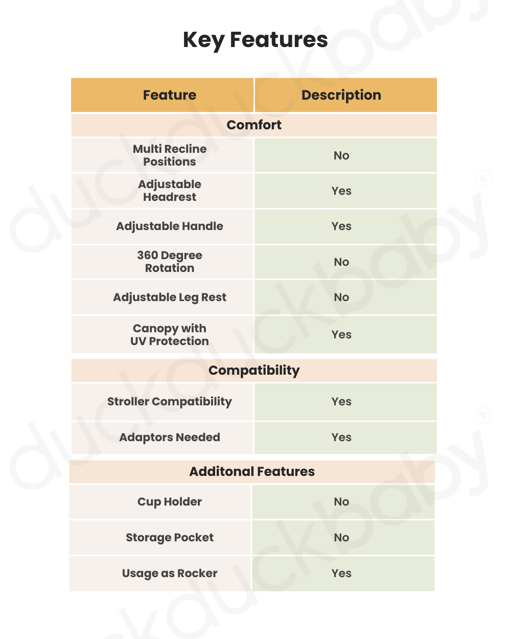 • Removable Body Insert: Offers a custom fit and added comfort for newborns.