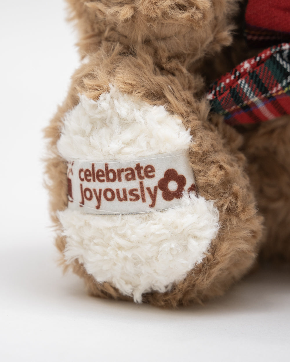 Just Bear Furry Bowbert With Checkered Bow Plush Soft Toy-Improves Motor Skills-36M+