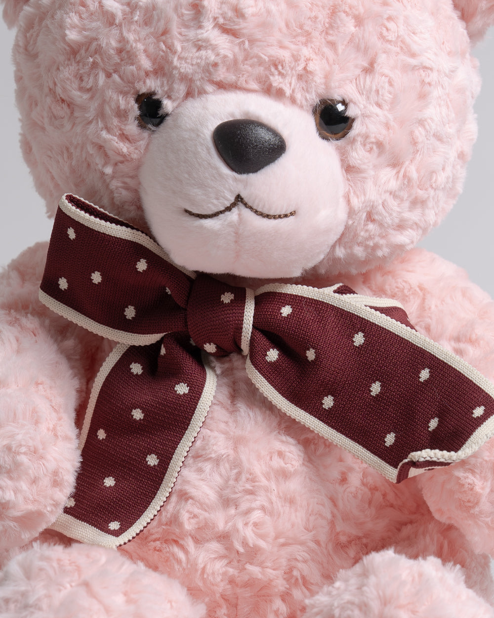 Just Bear Pink Teddy With Maroon Bow Soft Toy-Ultra Soft & Huggable Bear-36M+