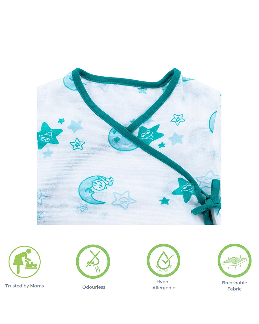 Kaarpas Blue Full Sleeves Kimono Jhabla Set with Nappy-Moon and Stars-Organic Cotton-For Infants