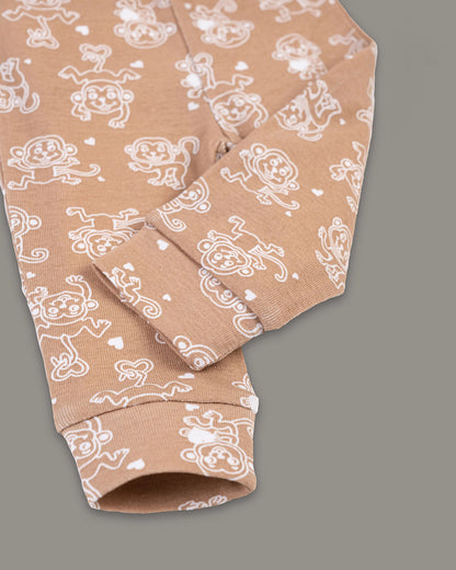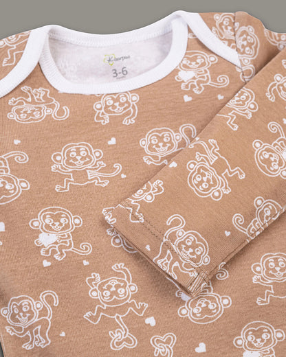 Kaarpas Brown PJ Set-Jumping Monkey-Organic Cotton-For Infants