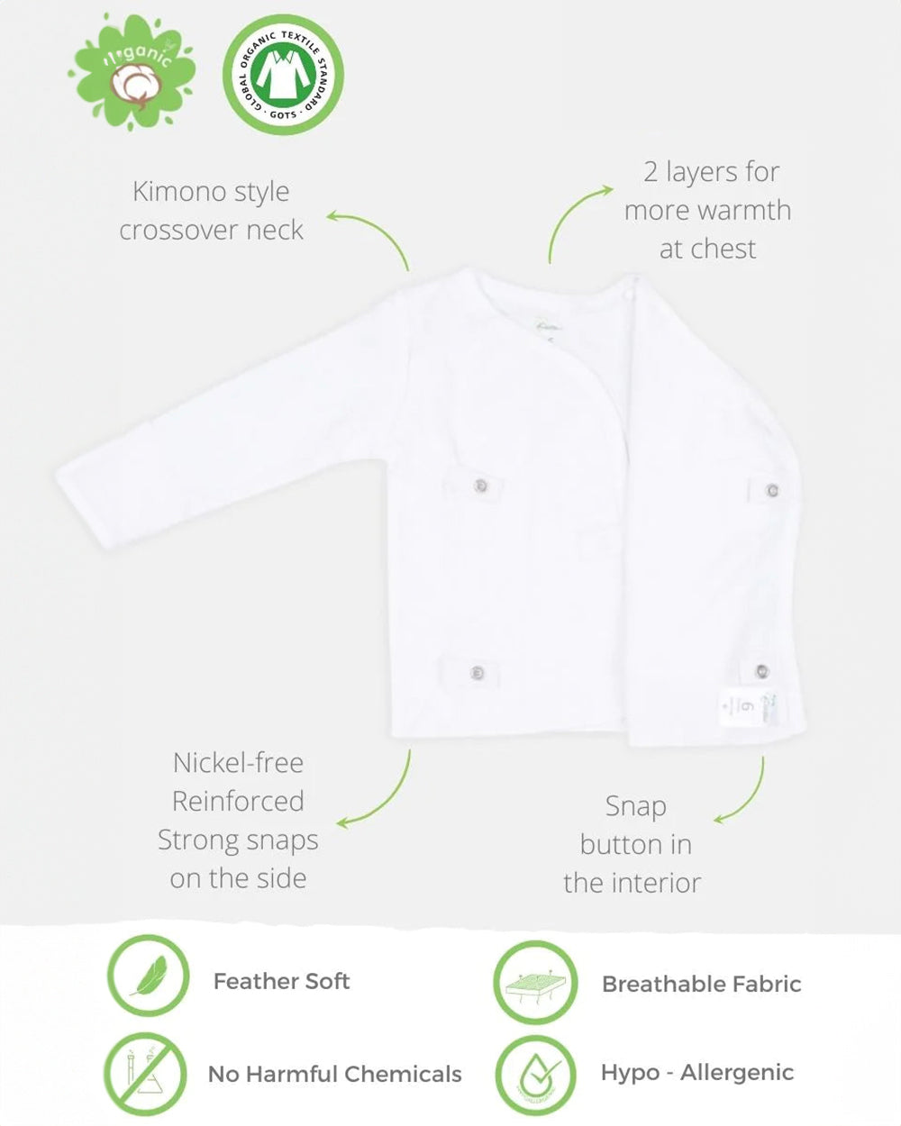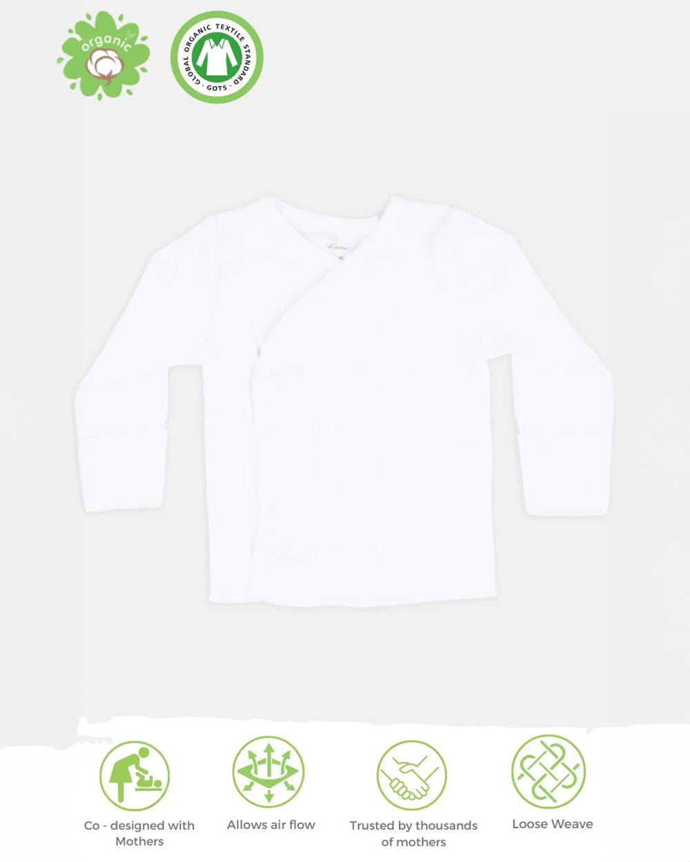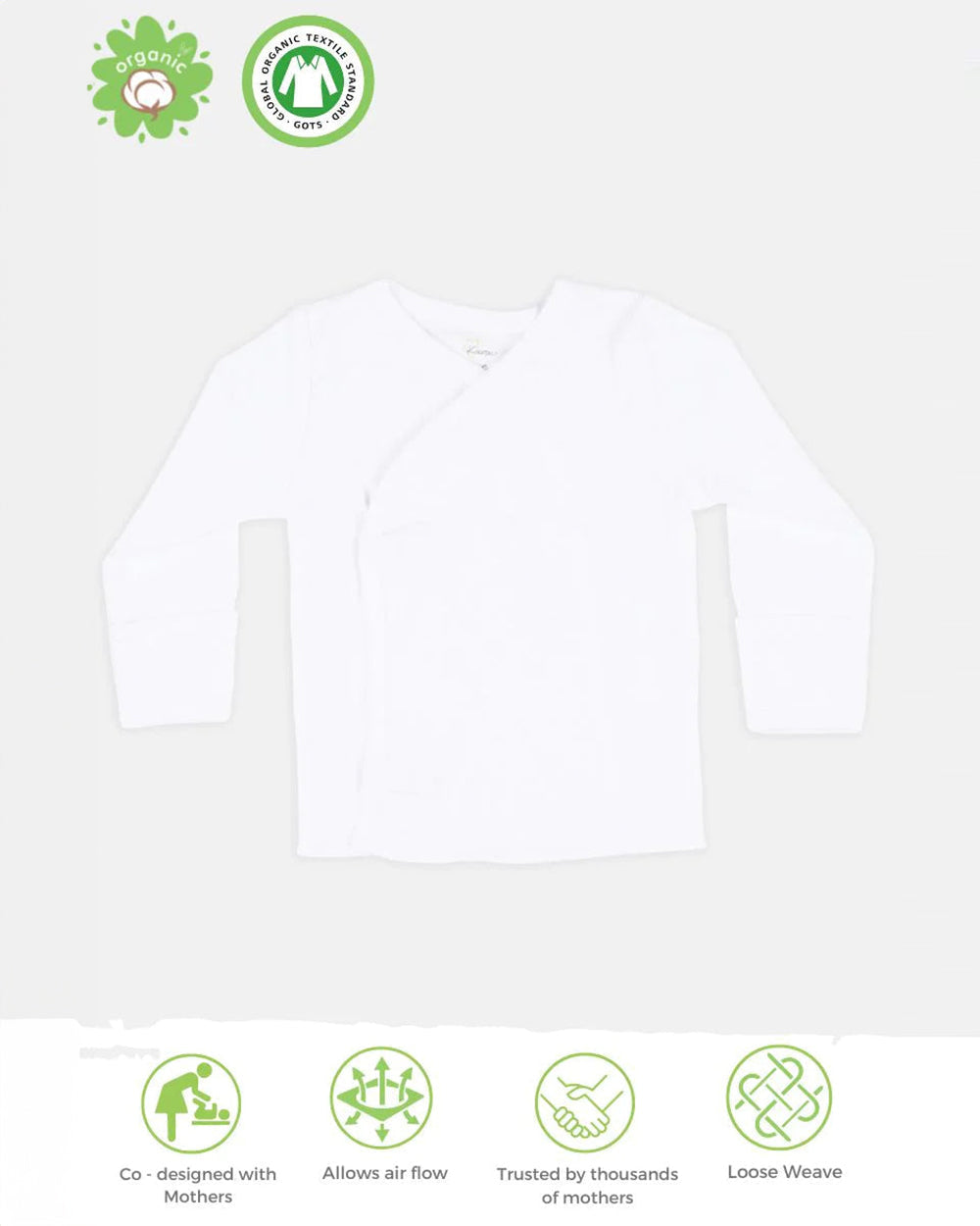 Kaarpas White Full Sleeves Jhabla-Solid-Organic Cotton-For Infants