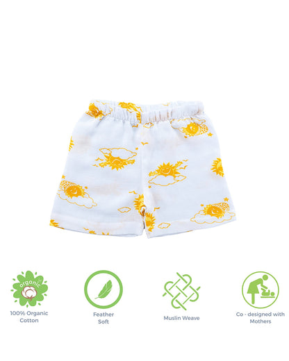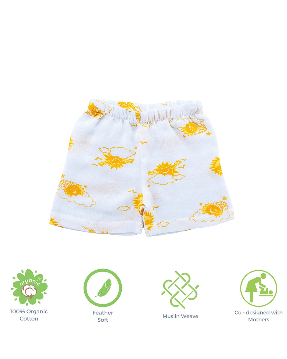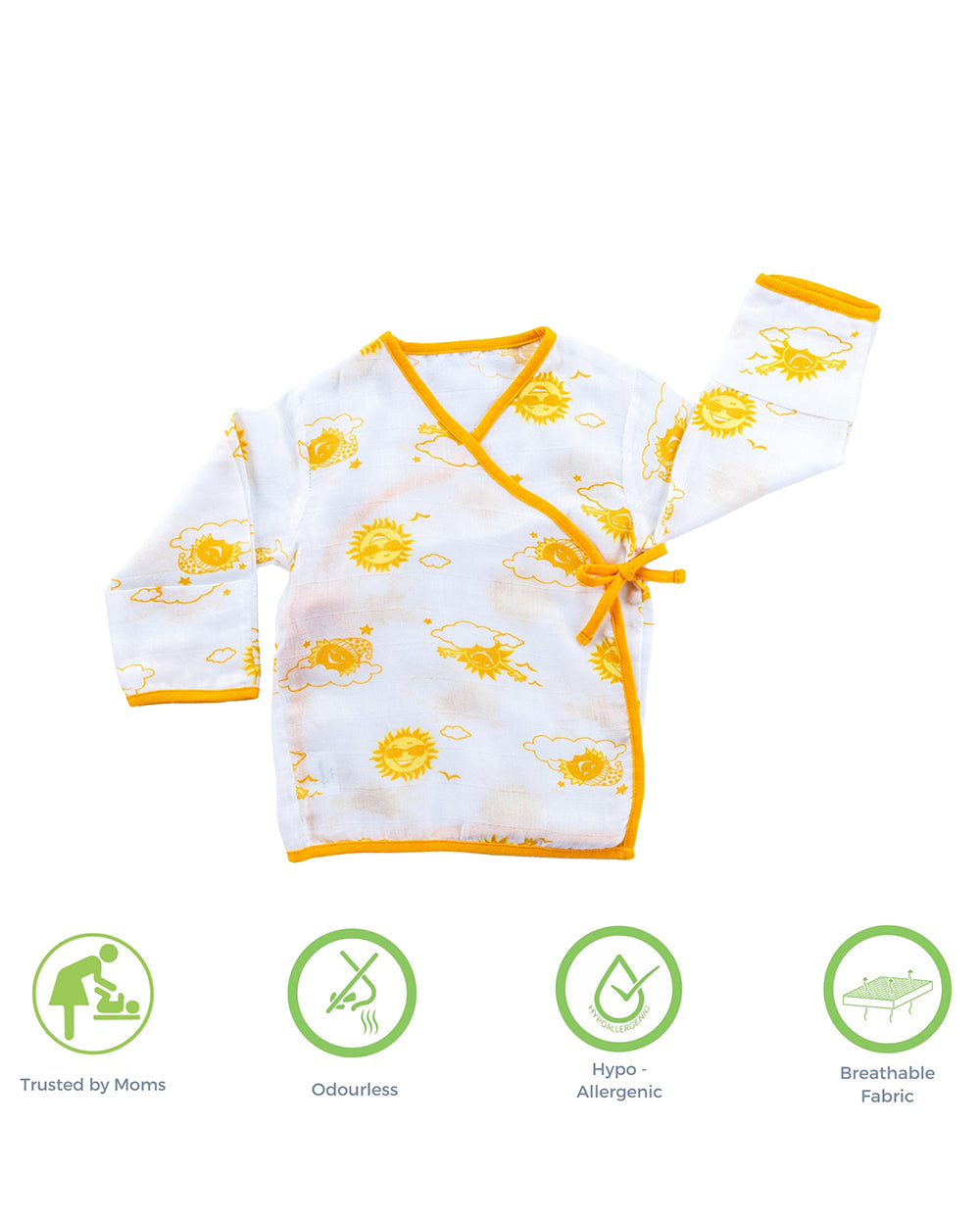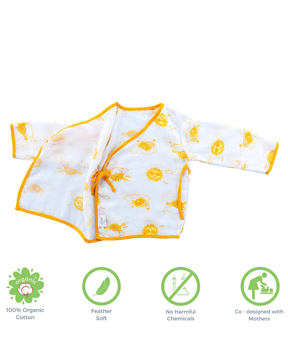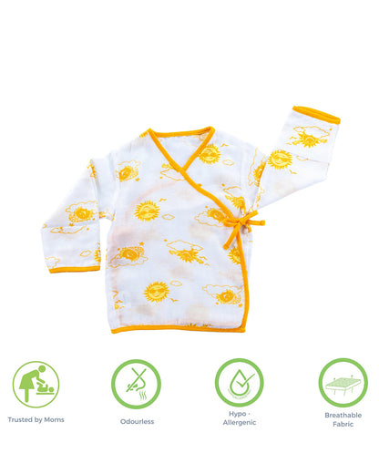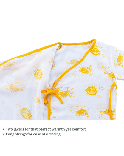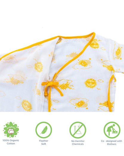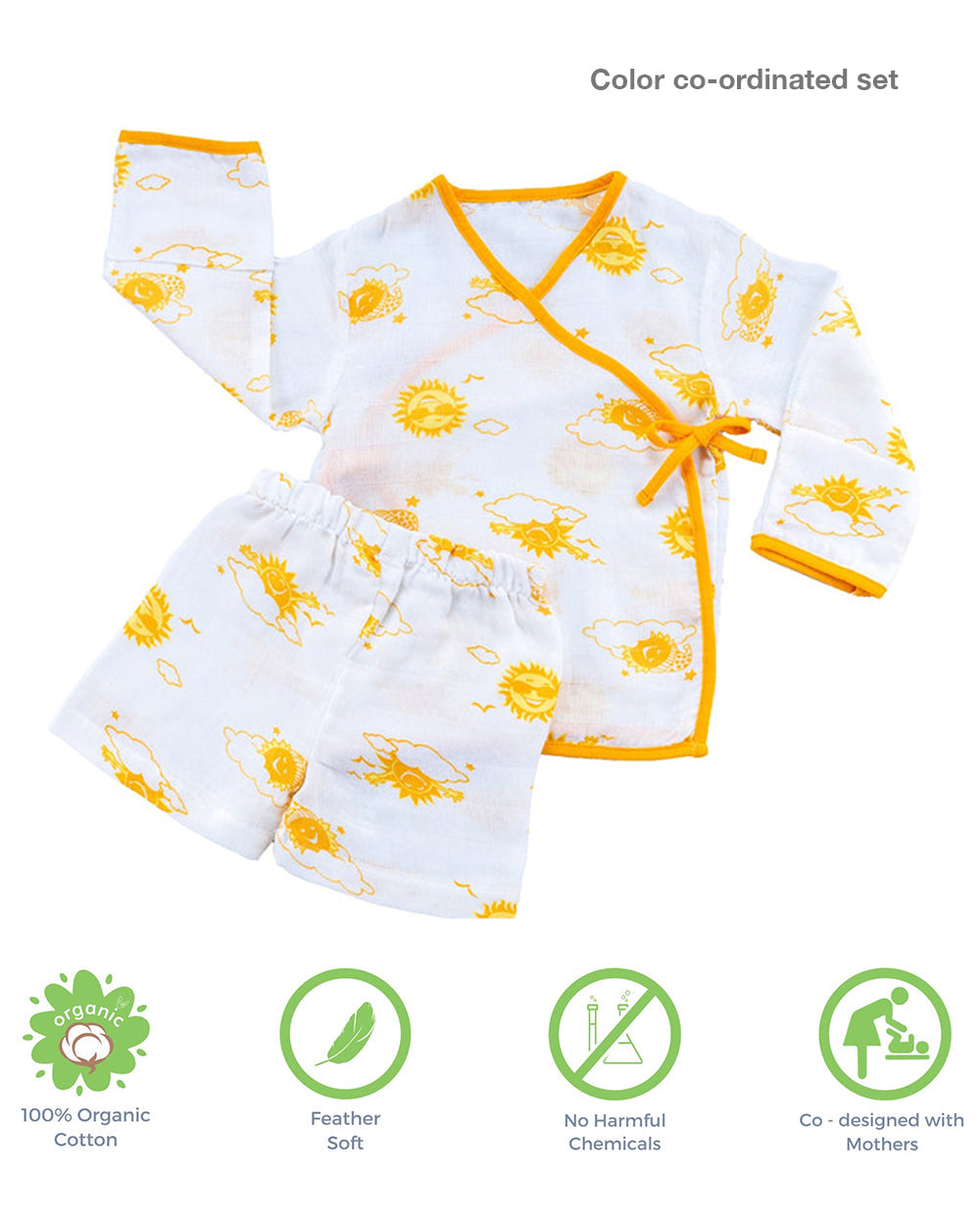 Kaarpas Yellow Full Sleeves Kimono Jhabla Set with Shorts-Sun-Organic Cotton-For Infants