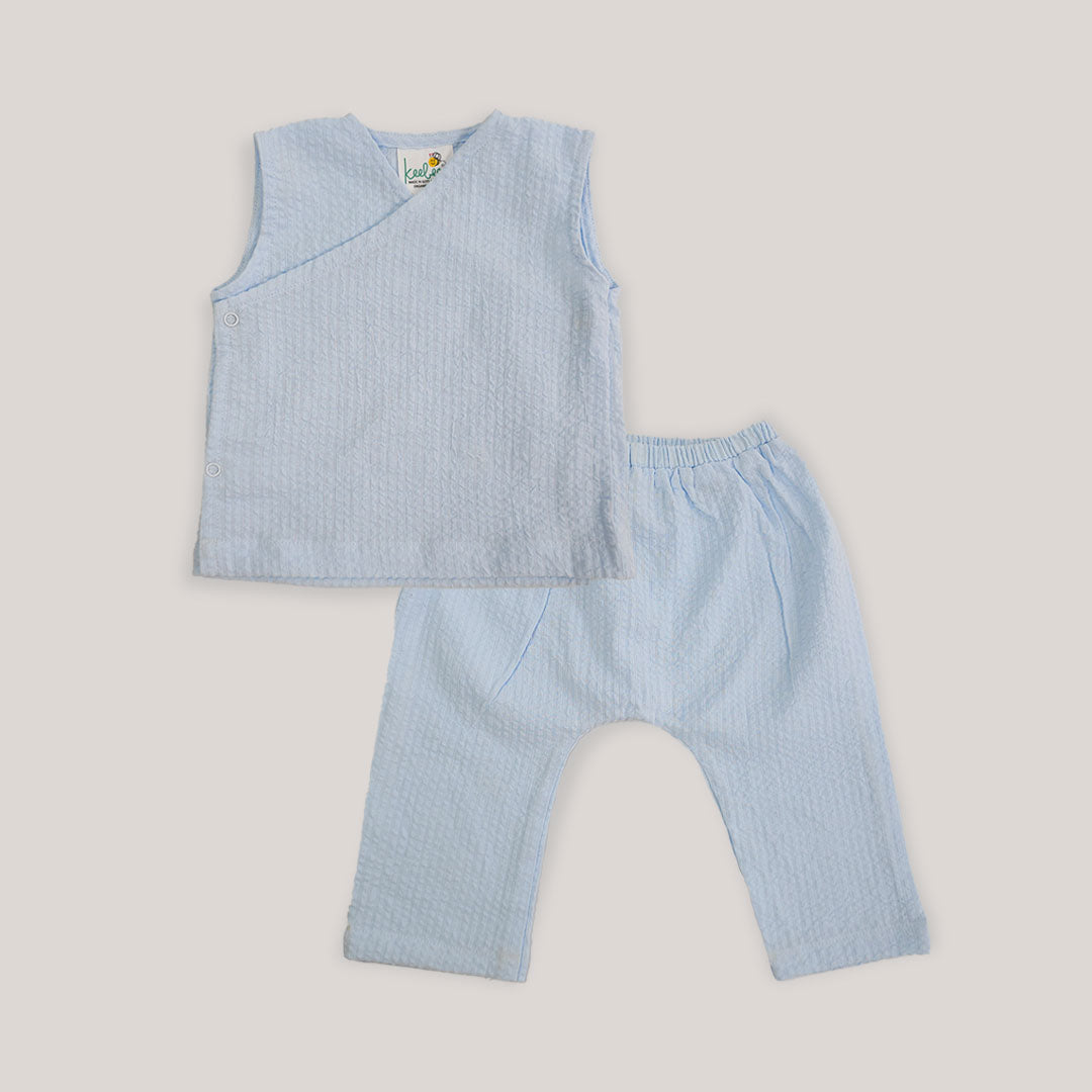 Keebee Blue Jhabla Set-Solid-Cotton-For Infants