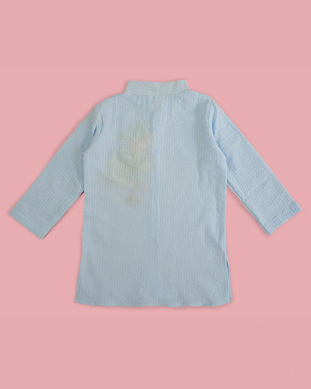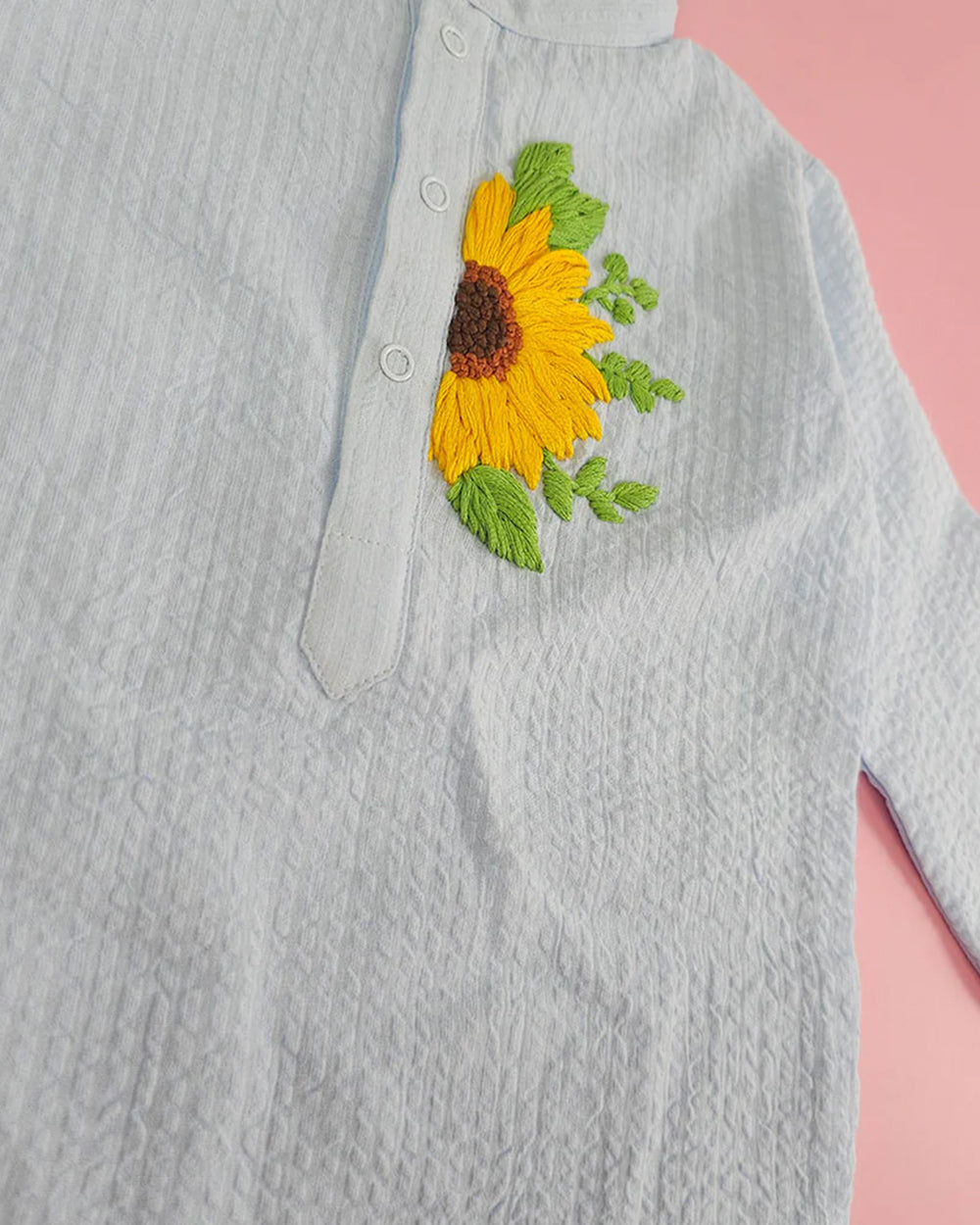 Keebee Blue Kurta Pajama Set-Sunflower Embroidered-Organic Cotton-For Infants
