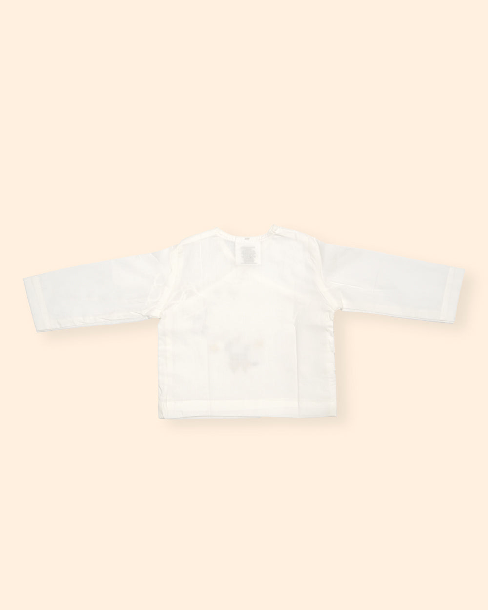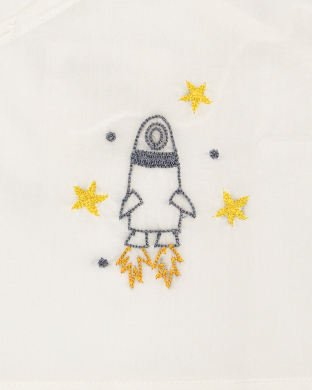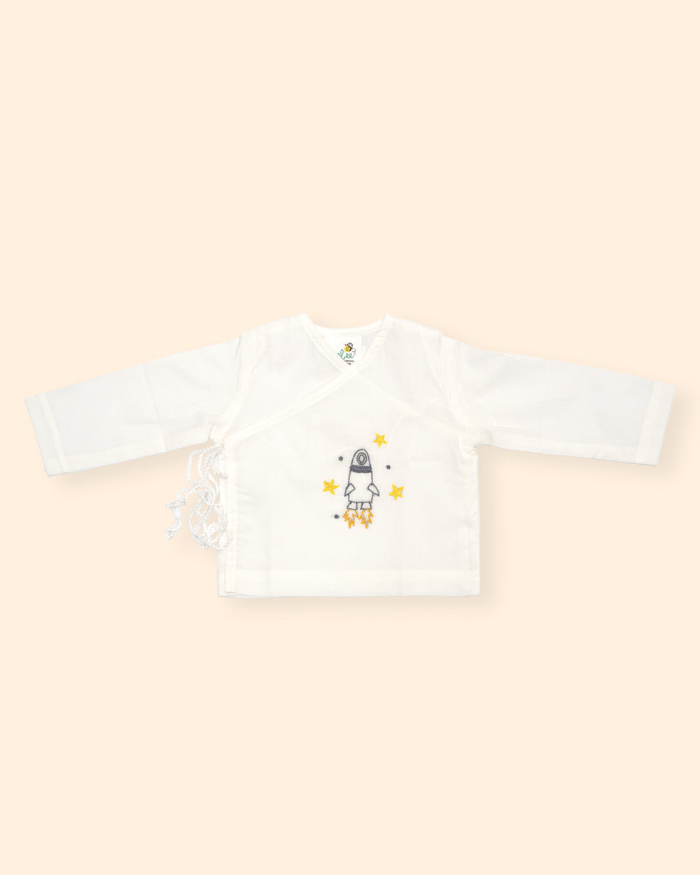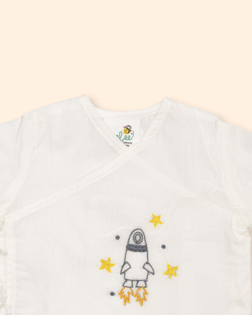 Keebee White Kimono Jhabla-Rocket Embroidered-Organic Cotton-For Infants