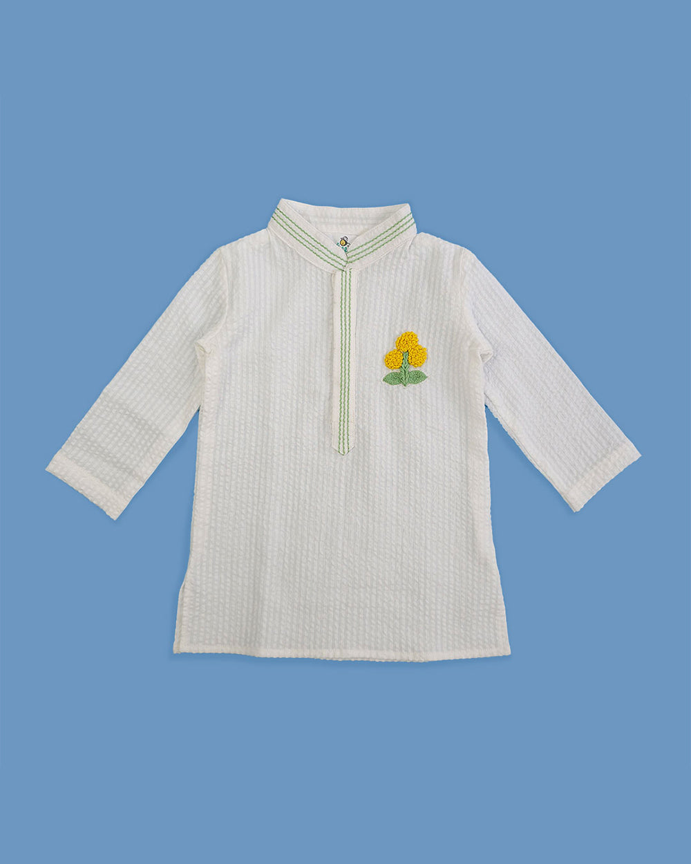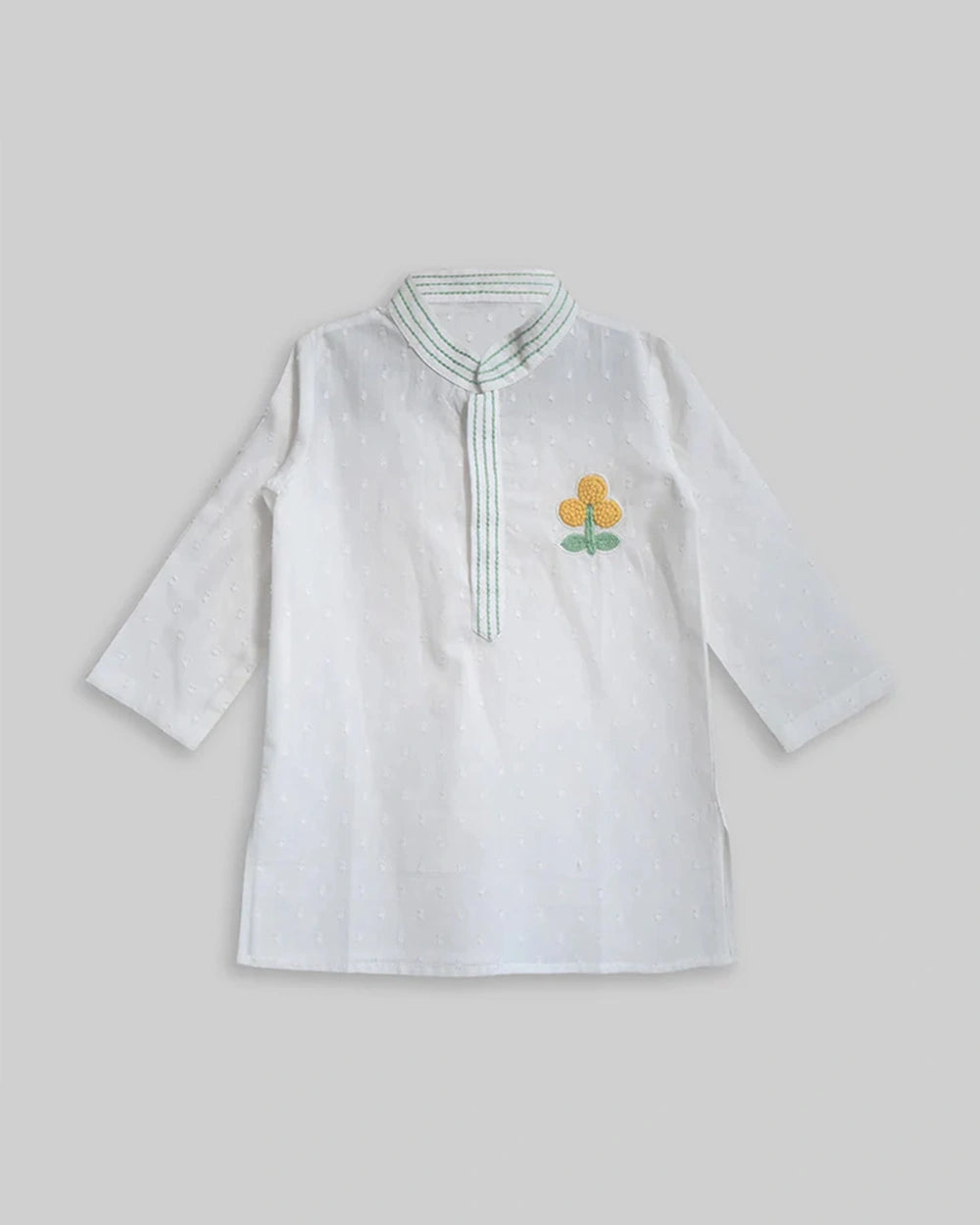 Keebee White Kurta Pajama-Marigold-Cotton-For Infants