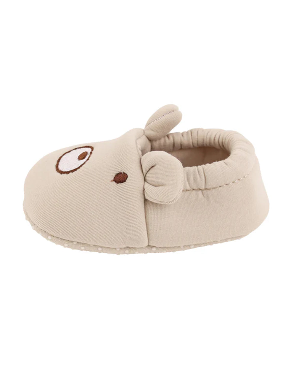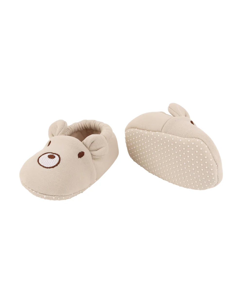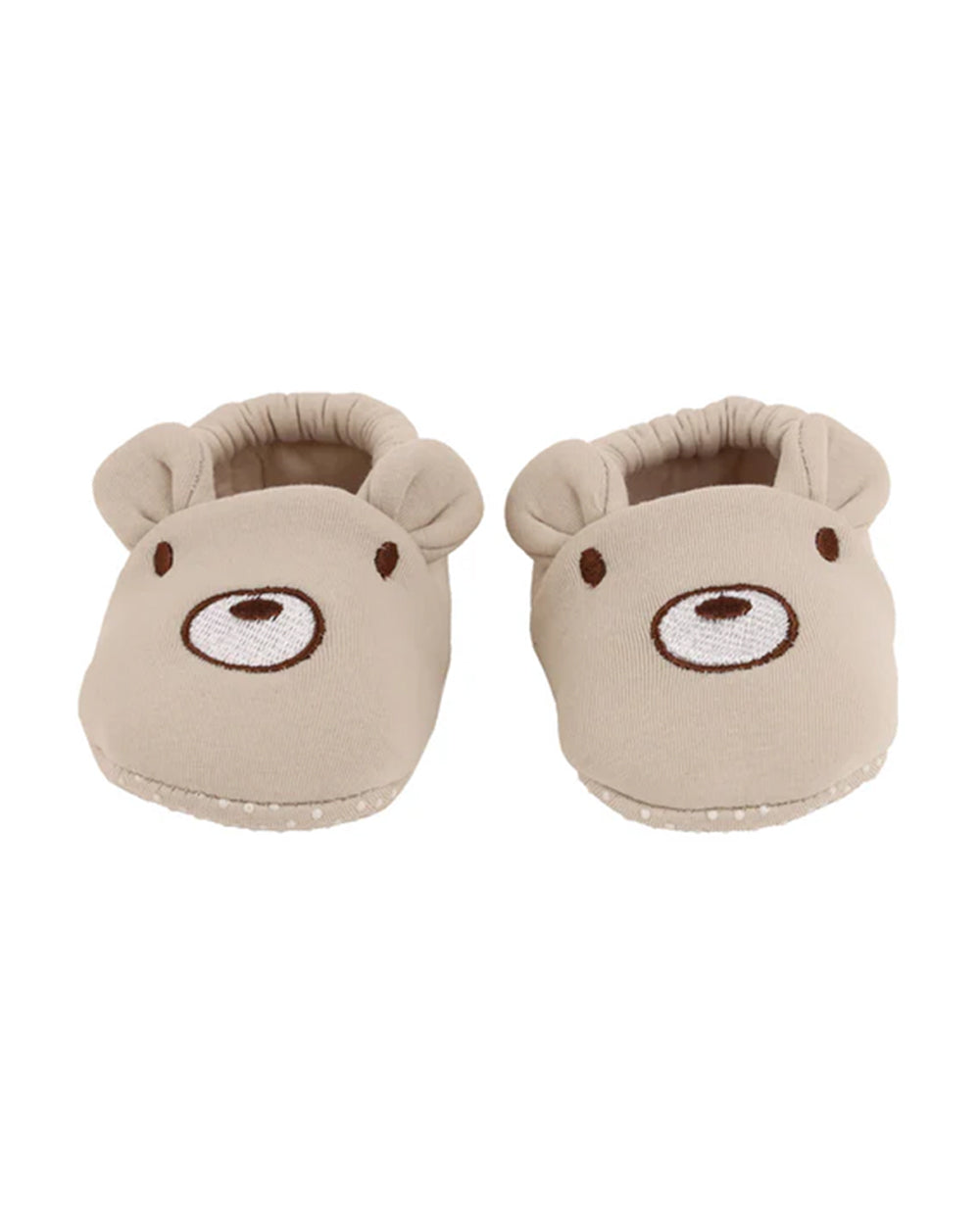 Kicks & Crawl Cream Elastic Booties-Cotton Blend-Bear-For Infants