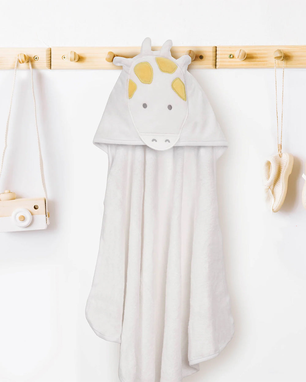 • 3D Giraffe Hood: Features a playful Gigi Giraffe design with soft ears and horns to keep the head cozy.