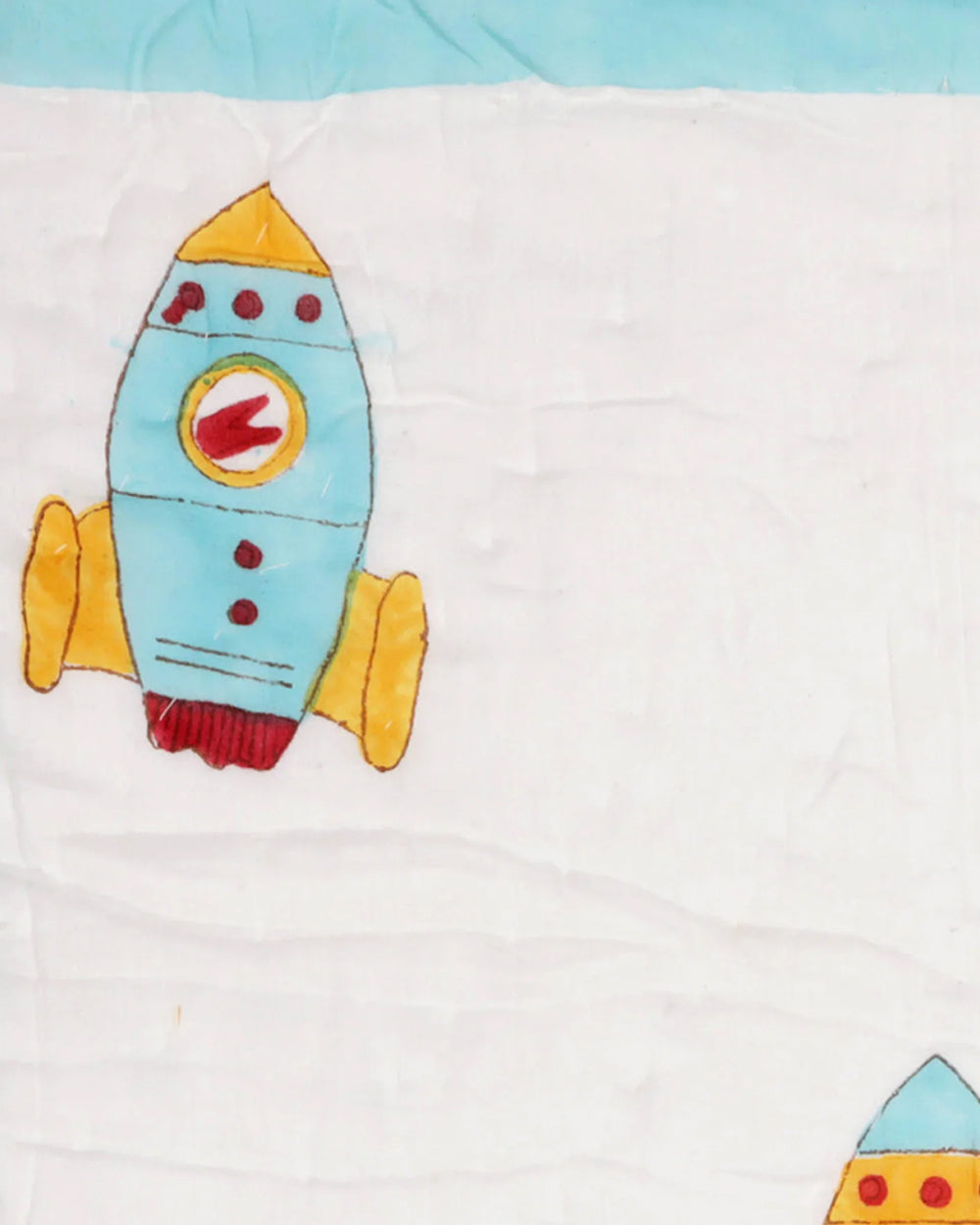 Kicks & Crawl Sky Rocket Quilted Thick Blanket-Cotton-White & Cyan Blue-For Infants