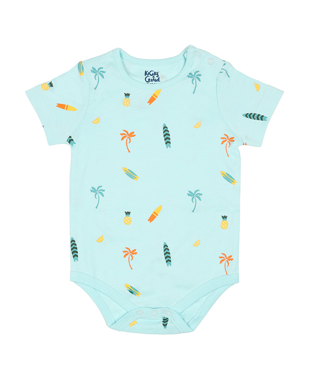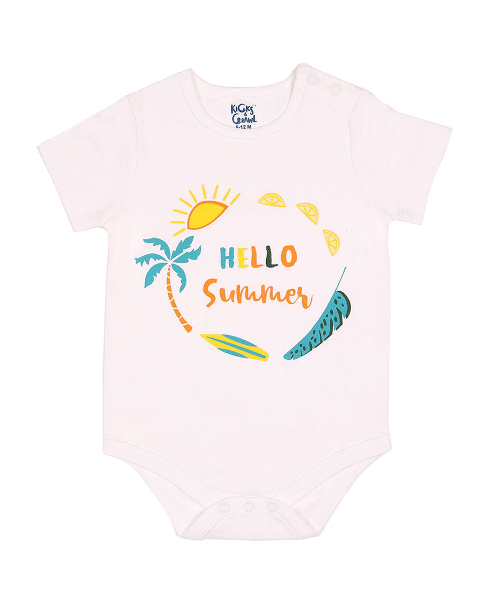 Kicks & Crawl Blue & White Onesie-Hello Summer-Cotton-Pack of 3-For Infants